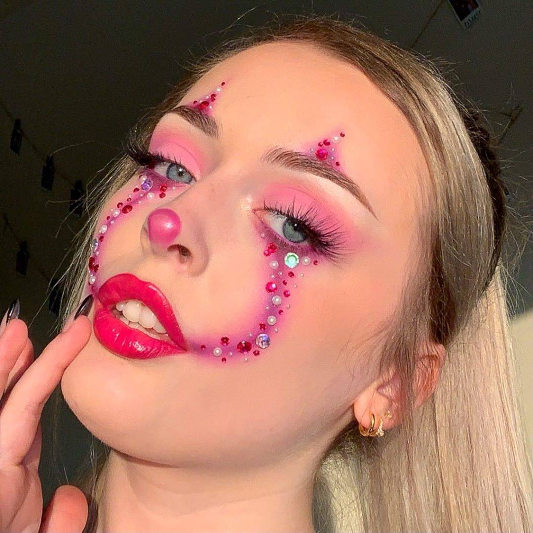Несмотря на все шутки о том, что самым популярным на Хэллоуин в этом году будет костюм коронавируса, своей актуальности не теряет и образ жуткого клоуна Пеннивайза из фильма «Оно». Воссоздать оригинальный облик злодея, питающегося страхами детей – белый грим, рыжий парик и оскал с тремя рядами острых зубов, – будет довольно сложно. Зато можно сделать акцент только на одной части его образа – зловещей улыбке и добавить ей немного гламура с помощью розовых и фиолетовых теней, глянцевой помады, хайлайтера, сияние которого можно заметить даже из космоса, и стразов – чем их будет больше, тем лучше.