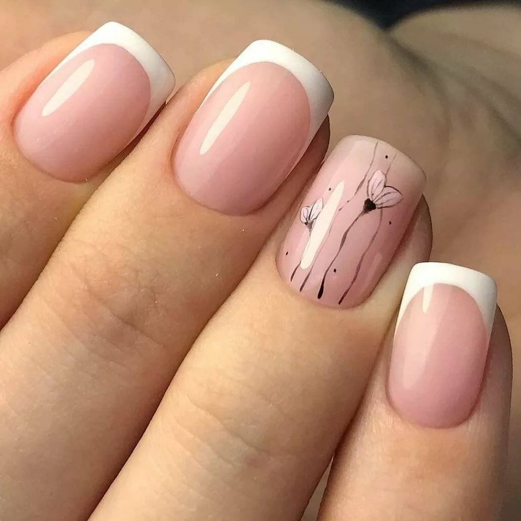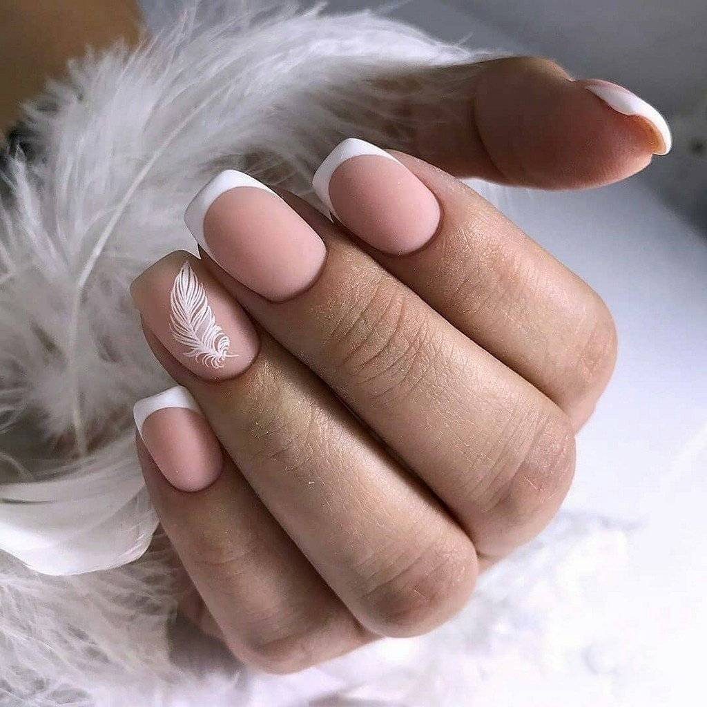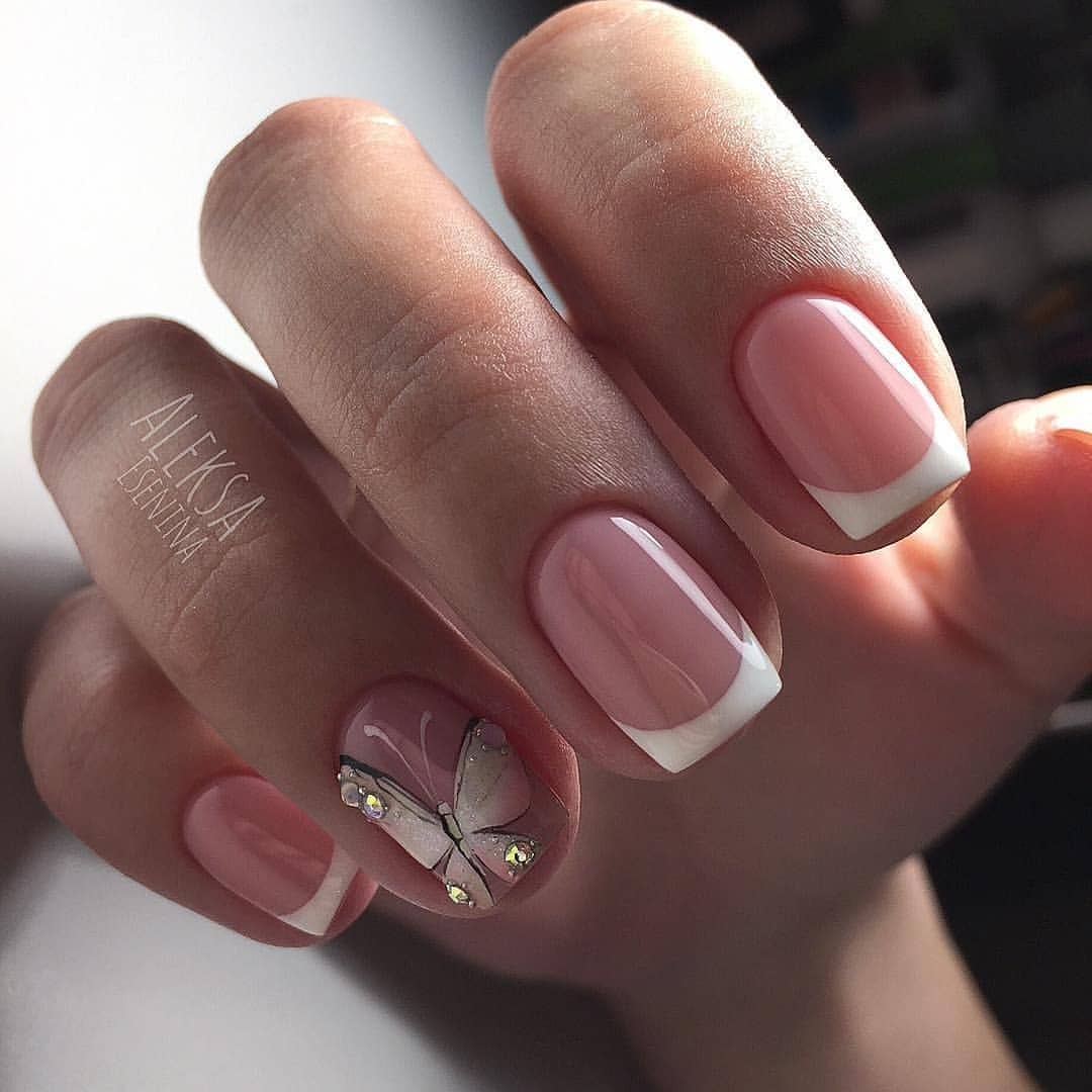 #2 Французский маникюр на короткие квадратные ногти 2020