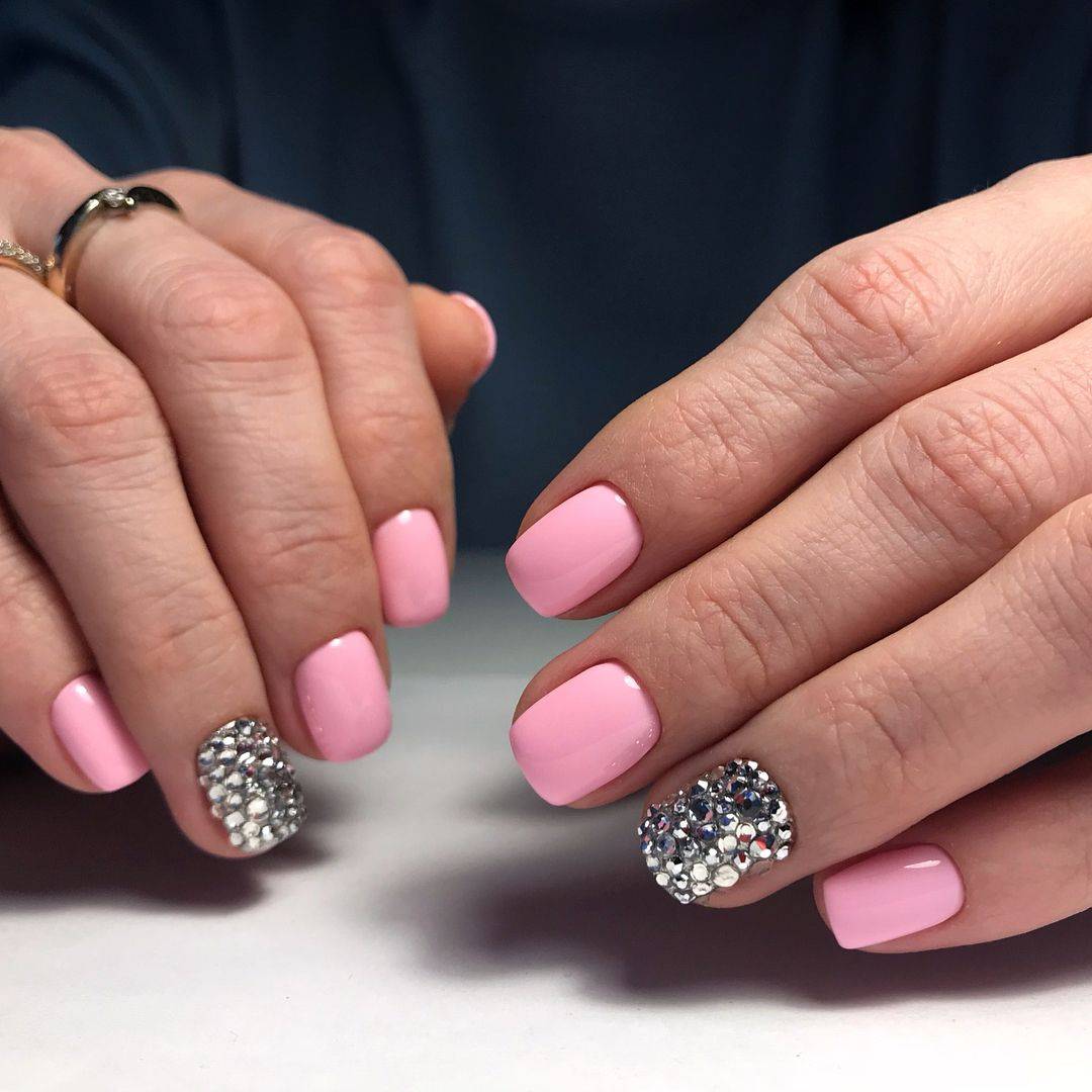- стразы – на коротких ногтях используйте небольшое количество мелких стразов и бульонок. В тренде инкрустация стразами одного пальца и выкладка стразами в прикорневой зоне.