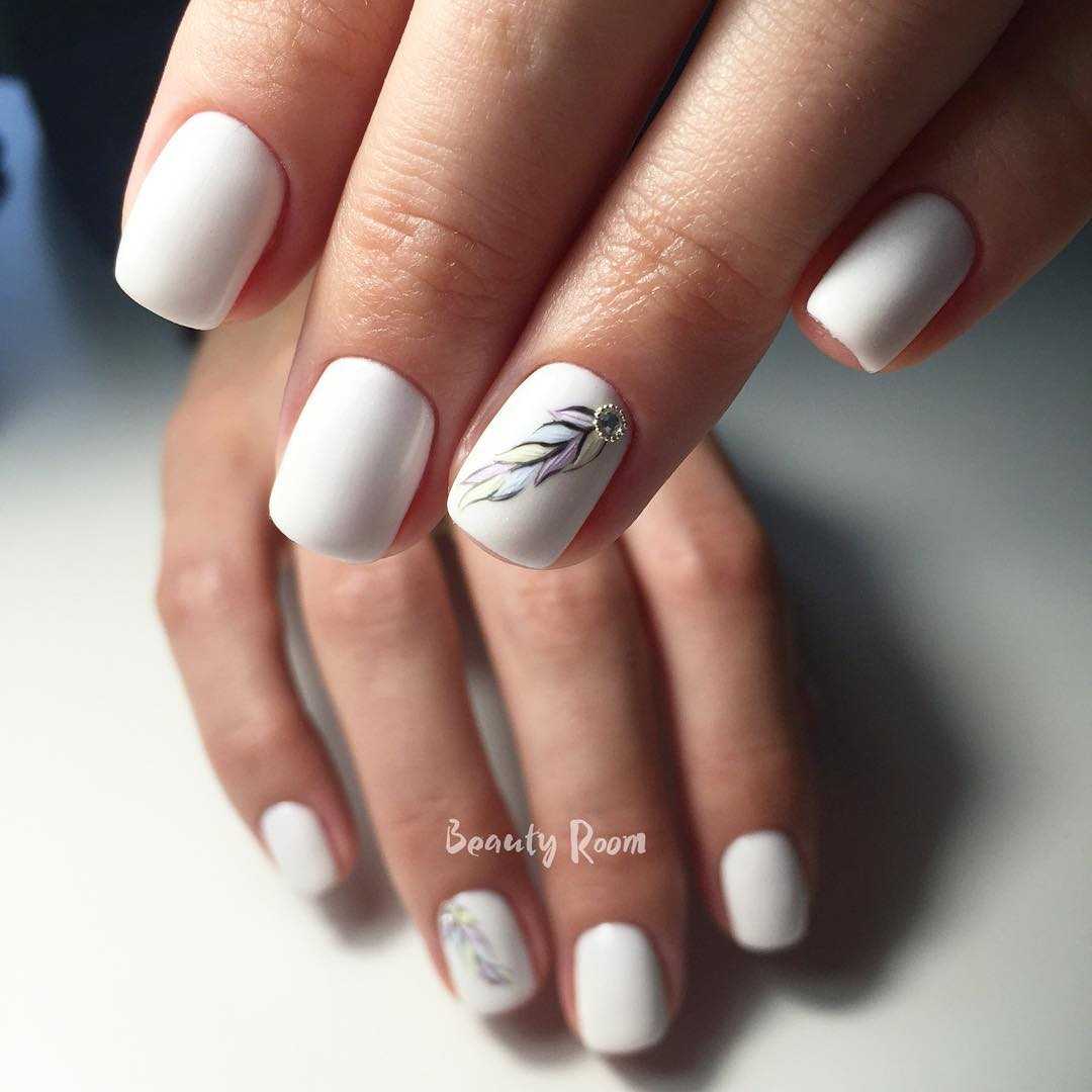 Белый маникюр шикарно смотрится на квадратной форме. Молочный оттенок облагораживает квадратную форму, делает пальцы тоньше и аккуратнее. Что касается декора, то в приоритете однотонное покрытие, минималистичный декор с глиттером и стразами в прикорневой зоне.