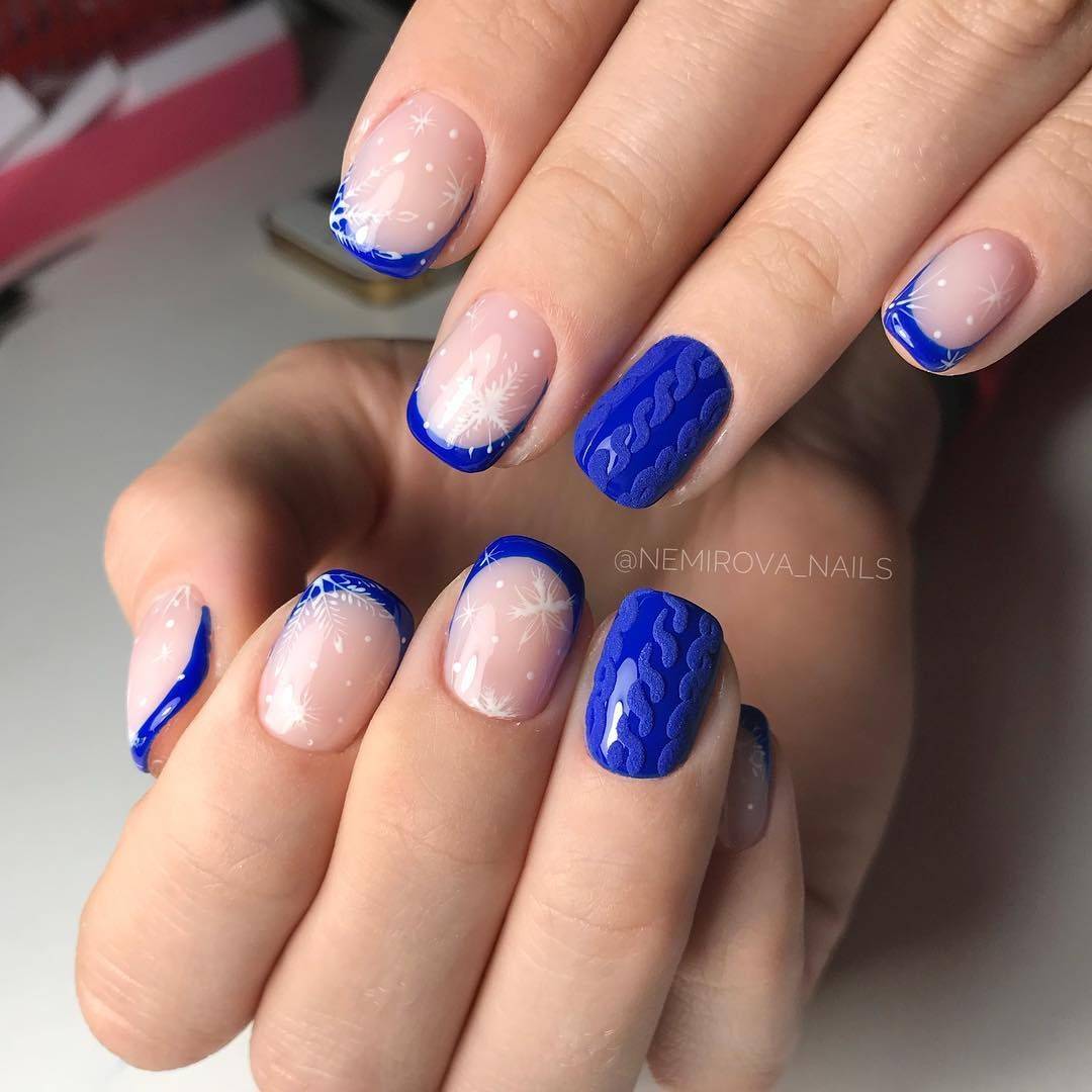 В новом году френч или лунный дизайн советуют украшать трафаретами, стемпингом, различными цветовыми акцентами.