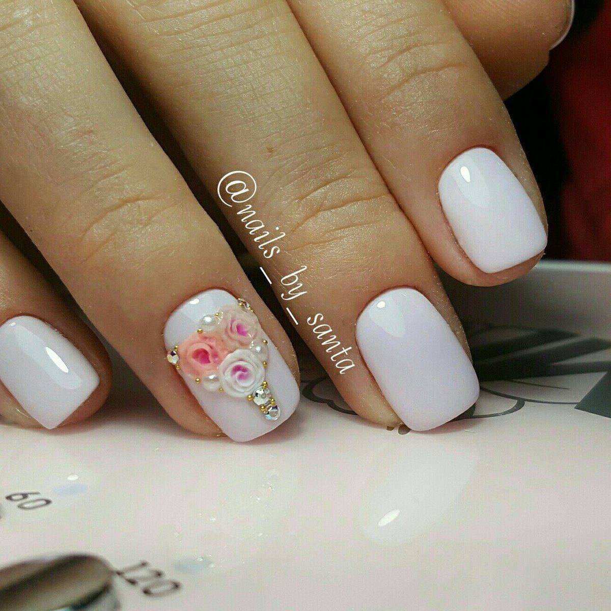 #1 Белый маникюр на короткие квадратные ногти 2020