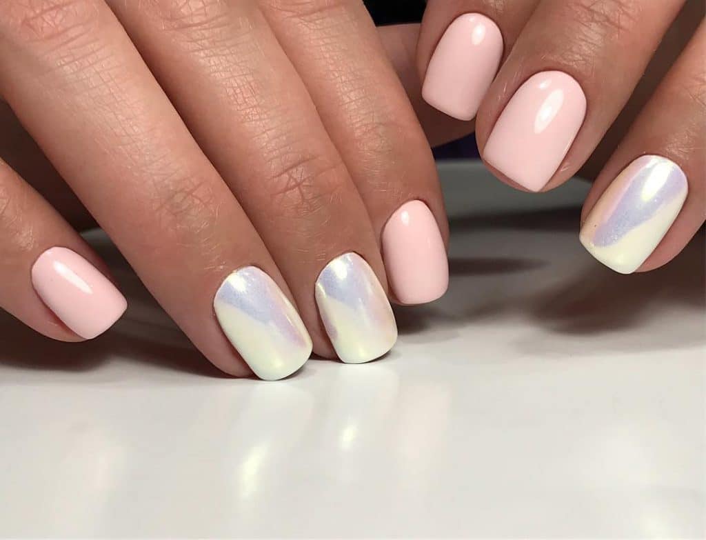 Маникюр жемчужного цвета на коротких ногтях