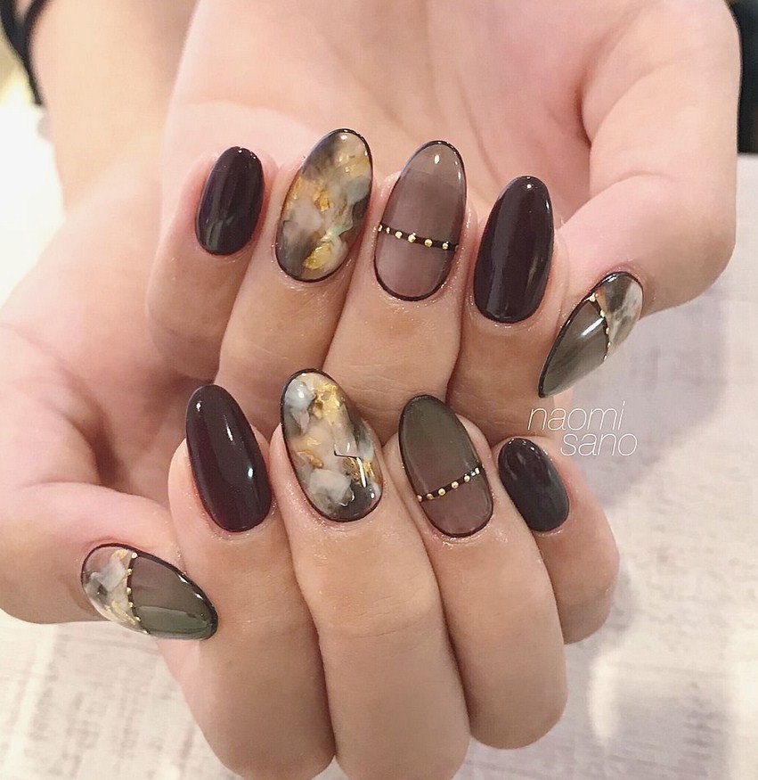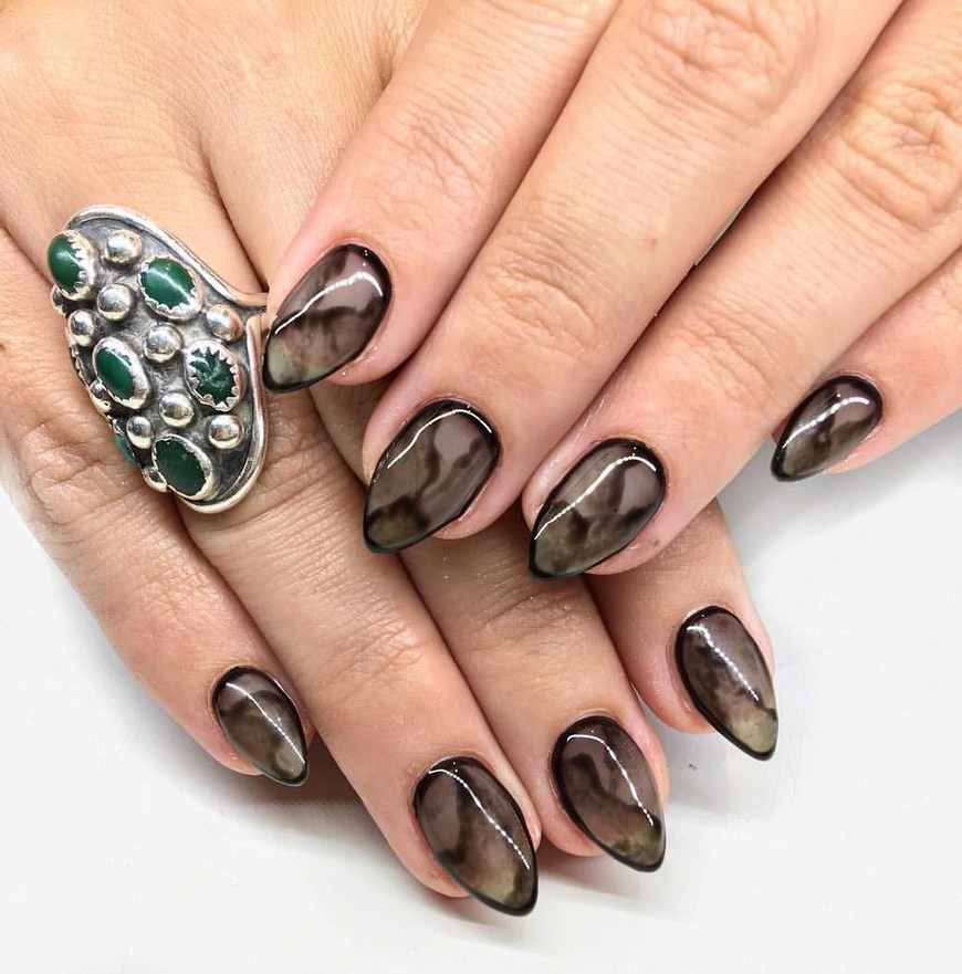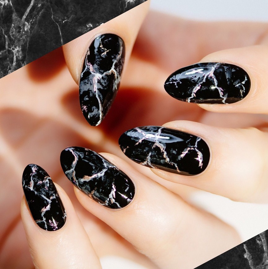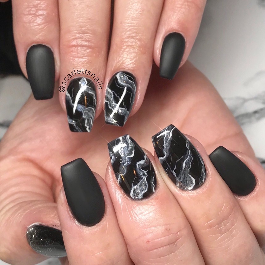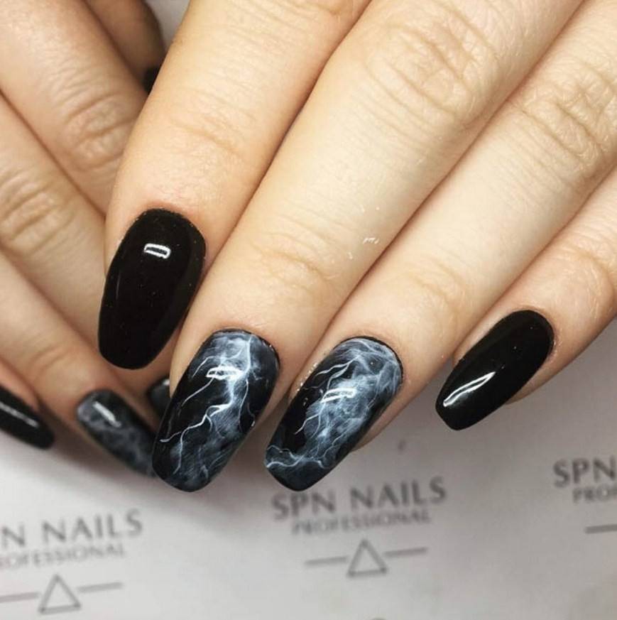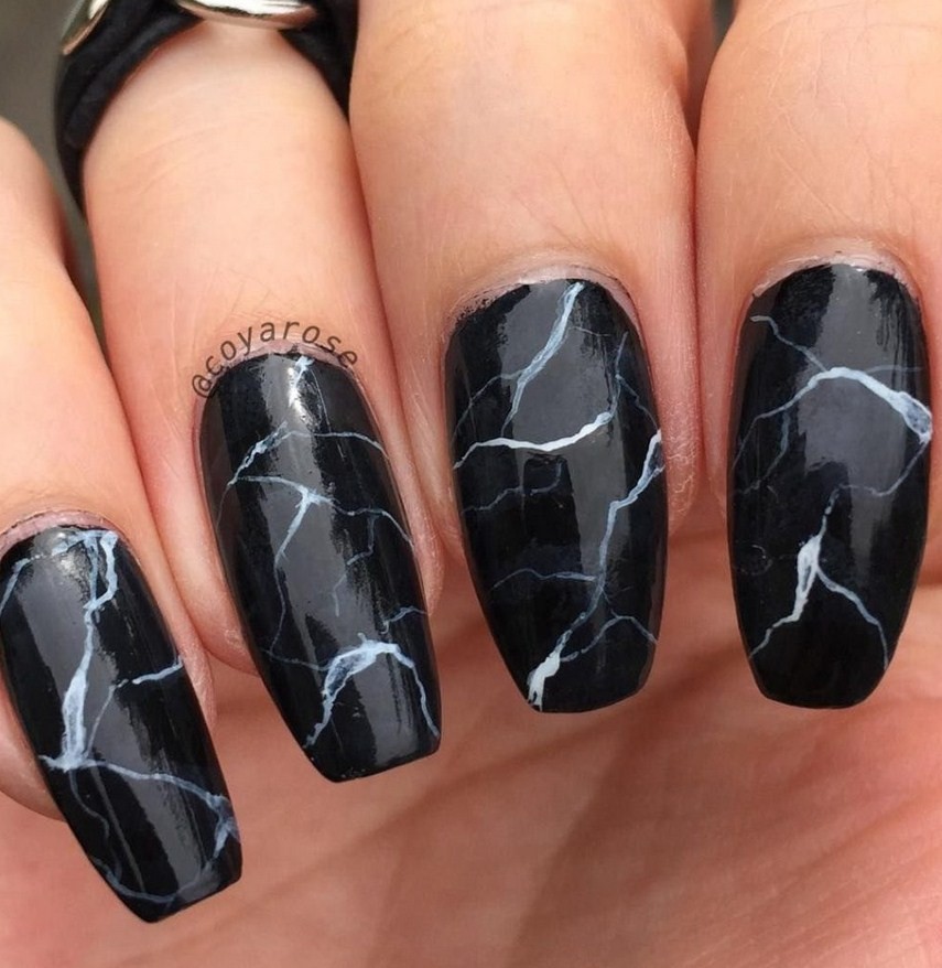 Мраморный маникюр в темных тонах, фото