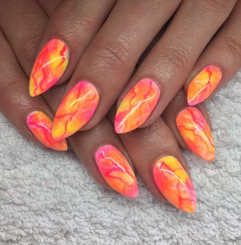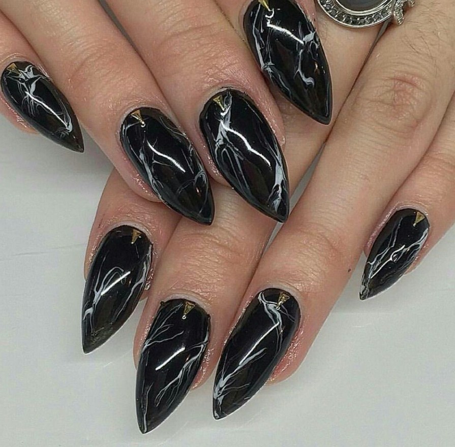 Мраморный маникюр на треугольные длинные ногти