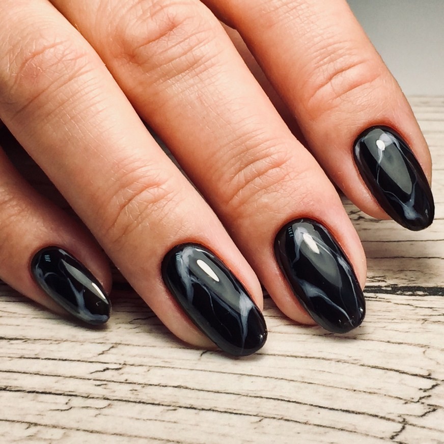 Мраморный маникюр темными гель-лаками