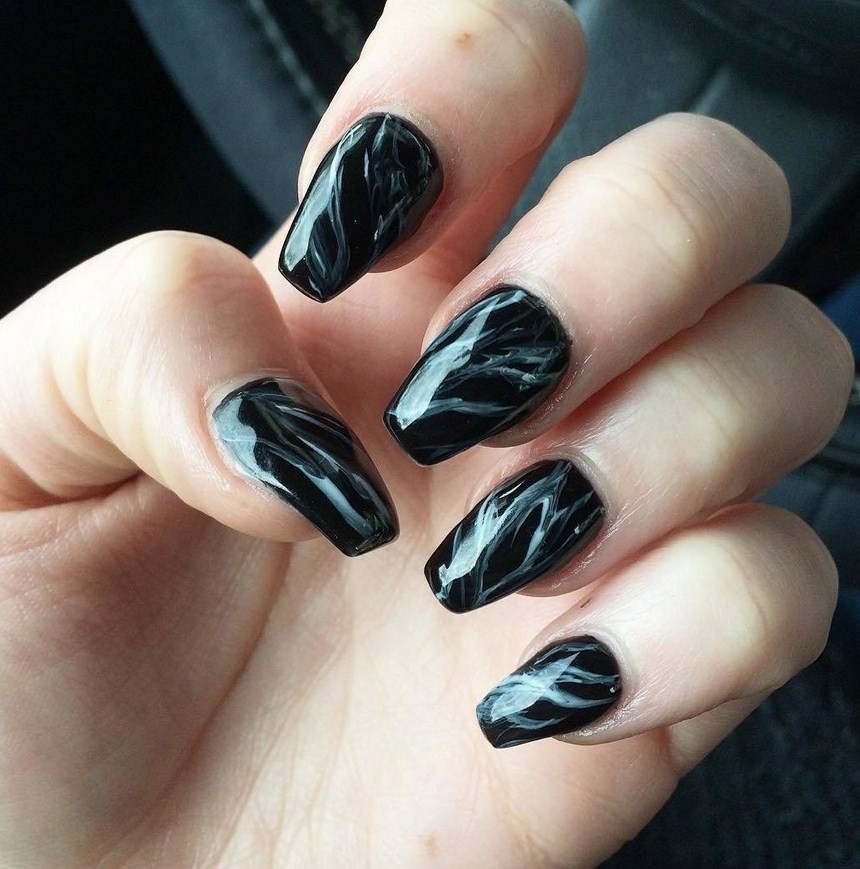 Классический черно-белый marble-маникюр