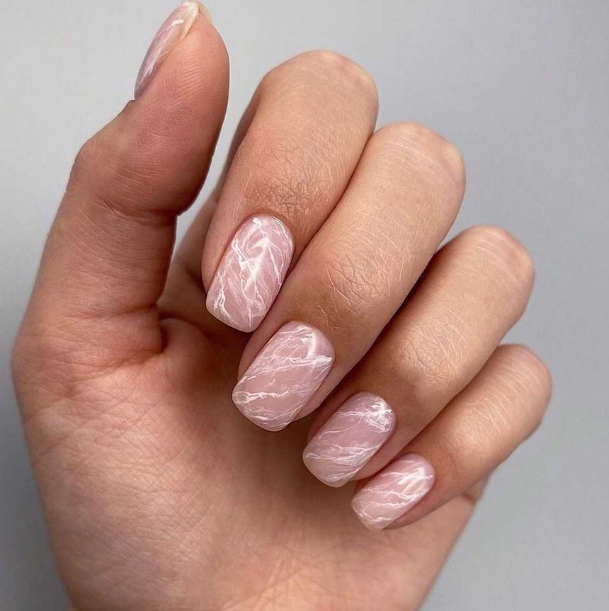 Мраморный маникюр на короткие ногти