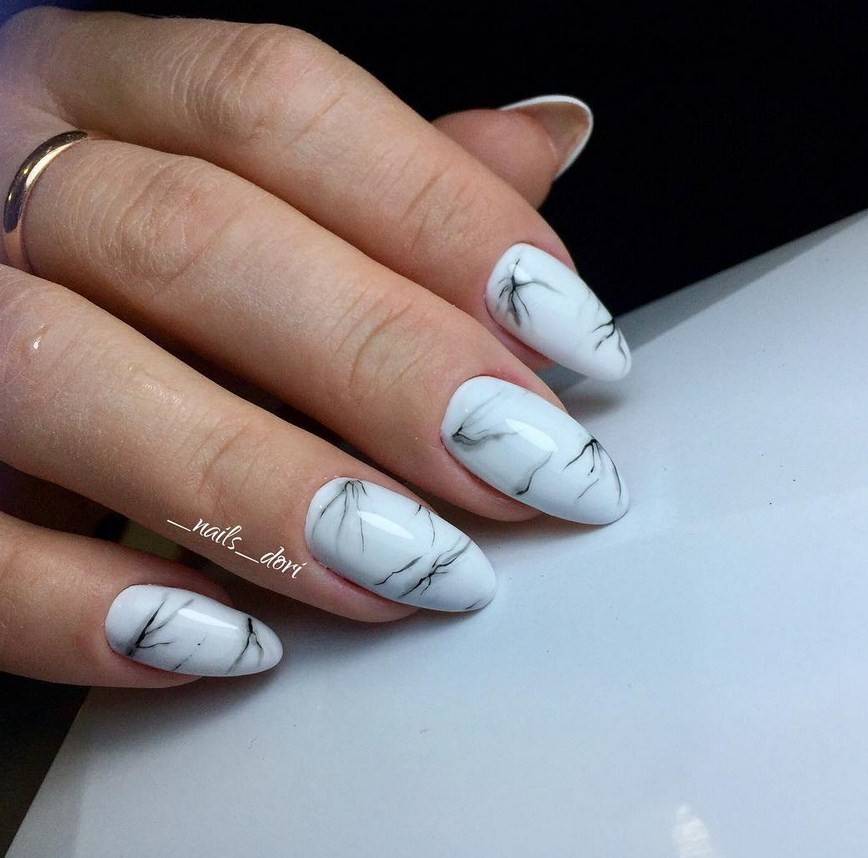 Классический. Стандартный дизайн, в котором используются черные тонкие линии на белой подложке, максимально точно имитирующие мраморный узор. В результате получается безупречный маникюр, который можно носить как на работу, так и на праздник.