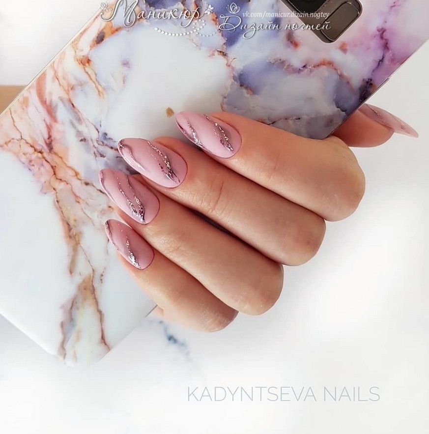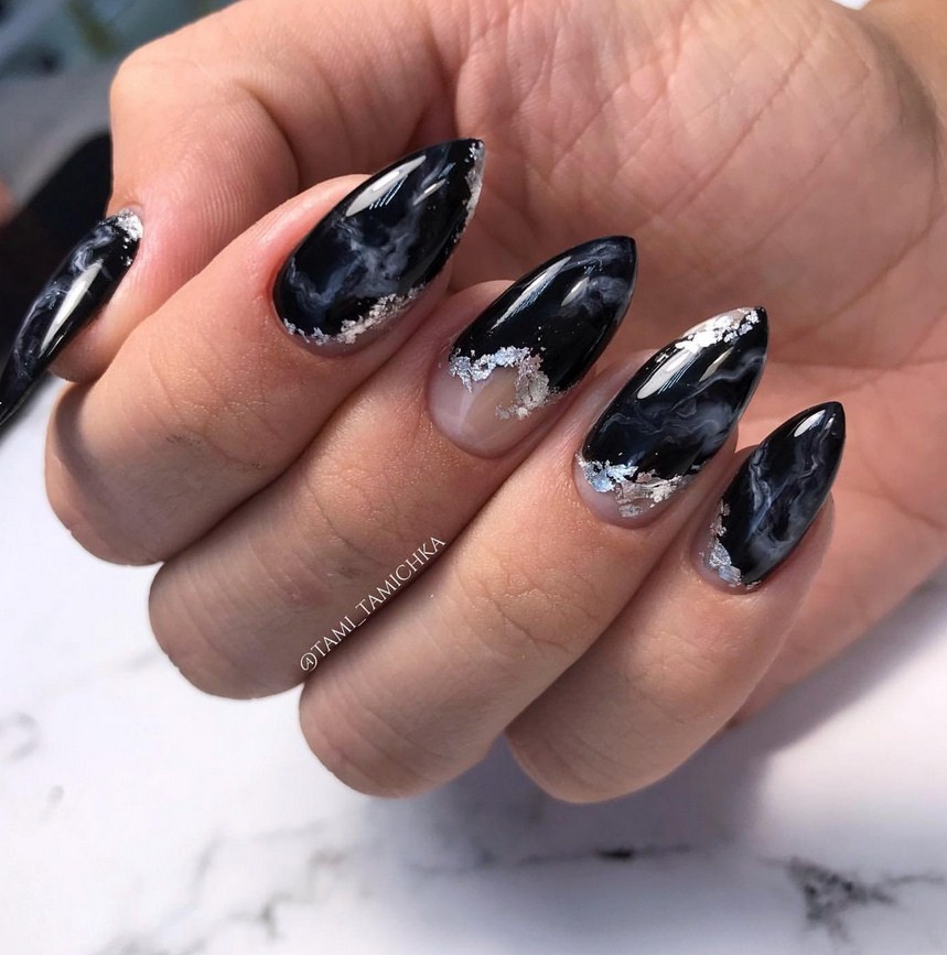 Мраморный маникюр с фольгой