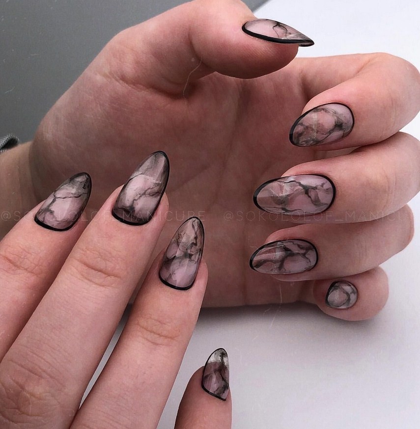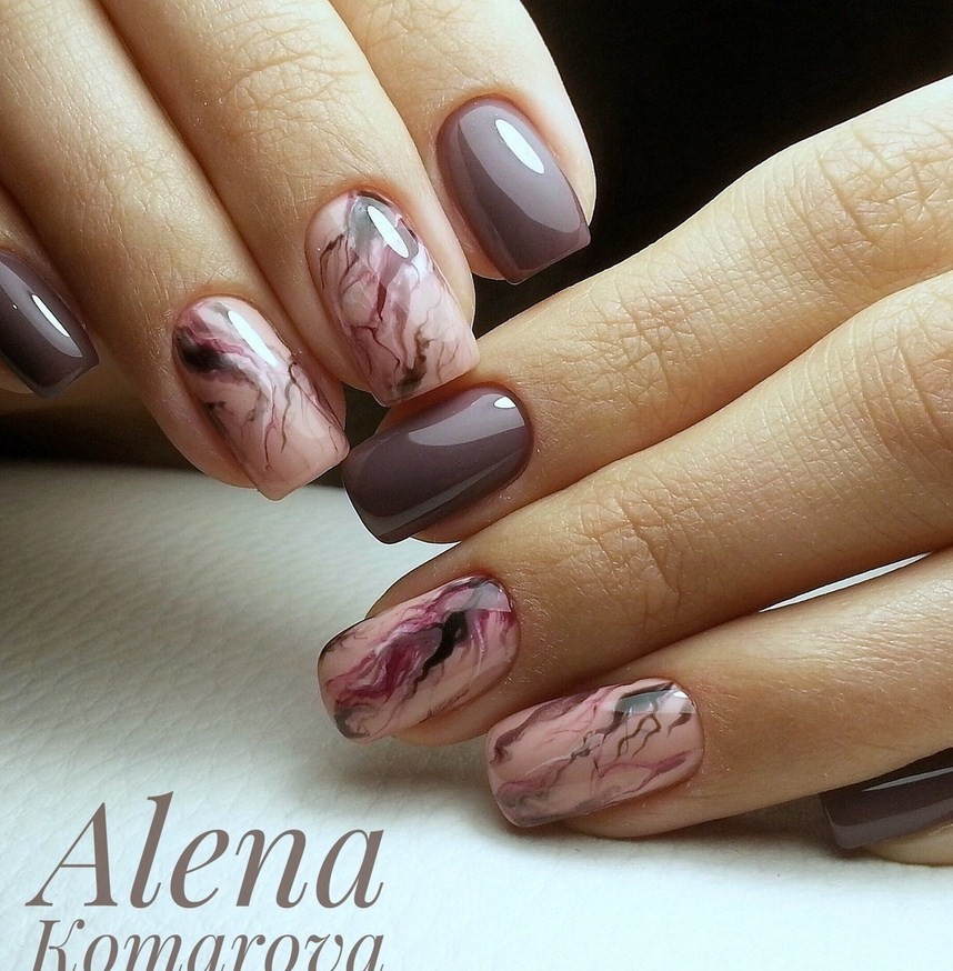 Варианты оформления мраморного маникюра