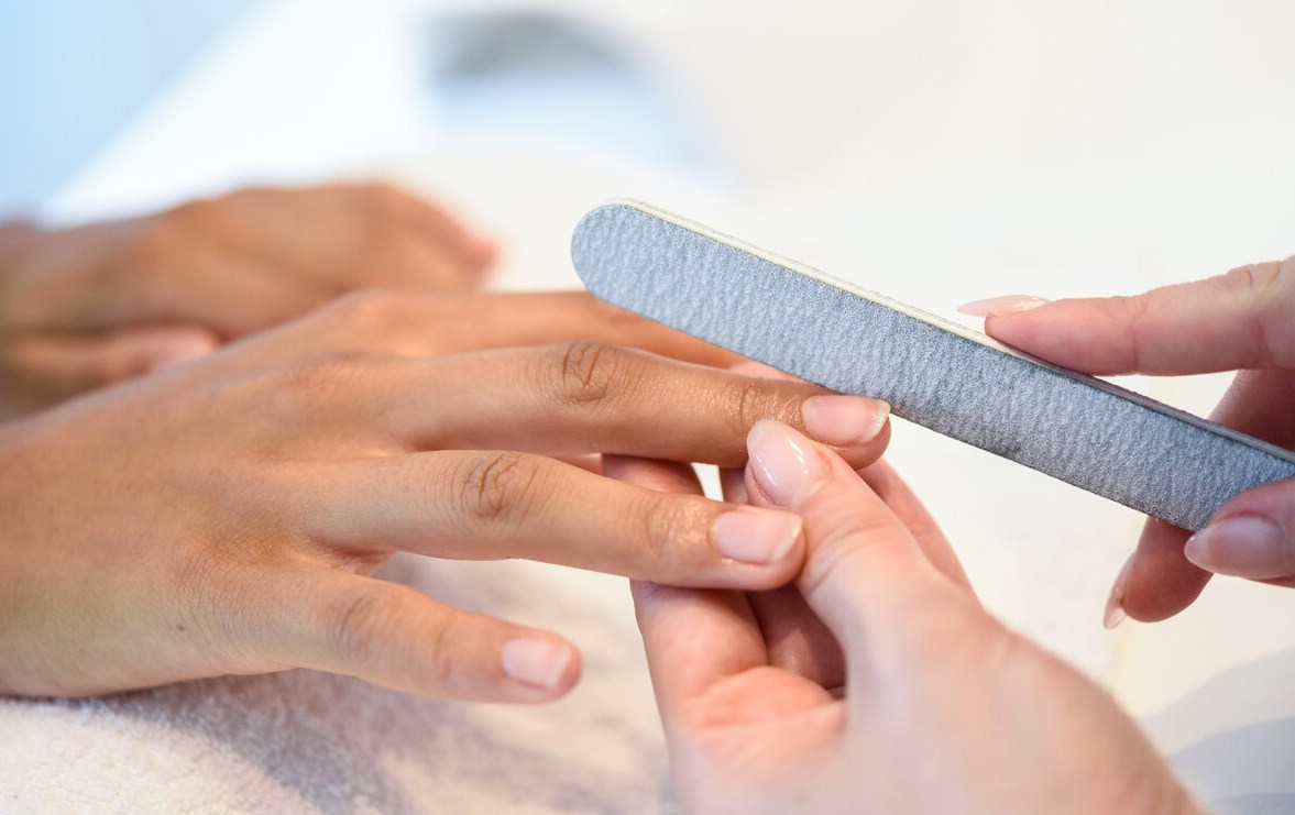 Первым делом нужно выполнить стандартный гигиенический маникюр – убрать птеригий, отодвинуть или срезать кутикулу, а также придать ногтевой пластине нужную форму.
