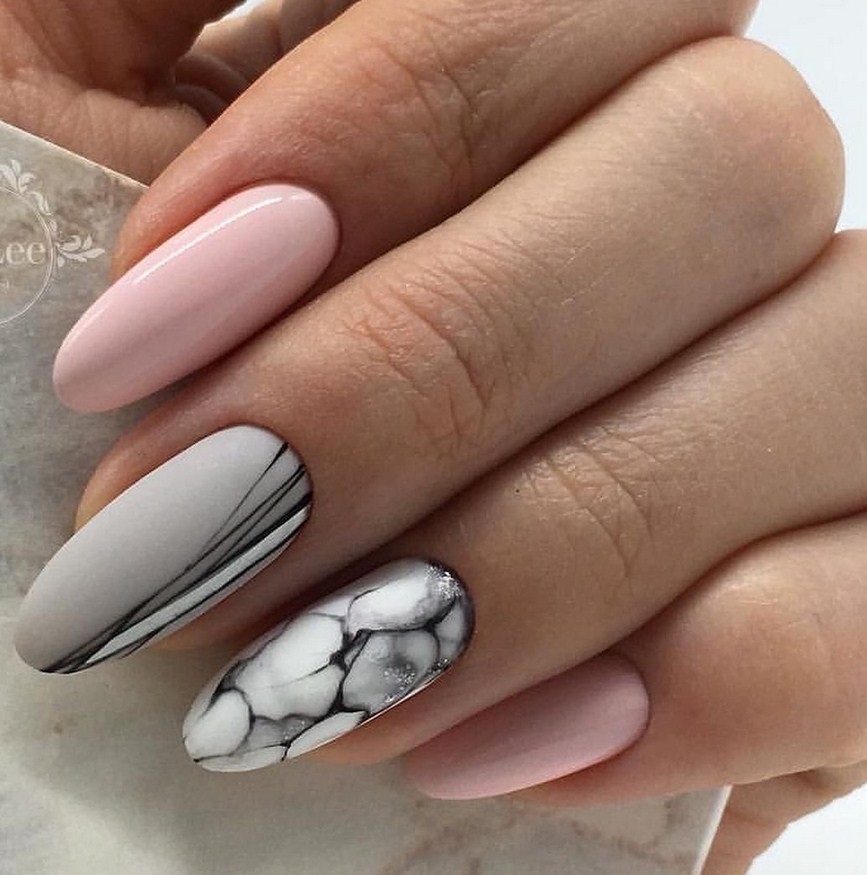 Популярные цвета мраморного маникюра
