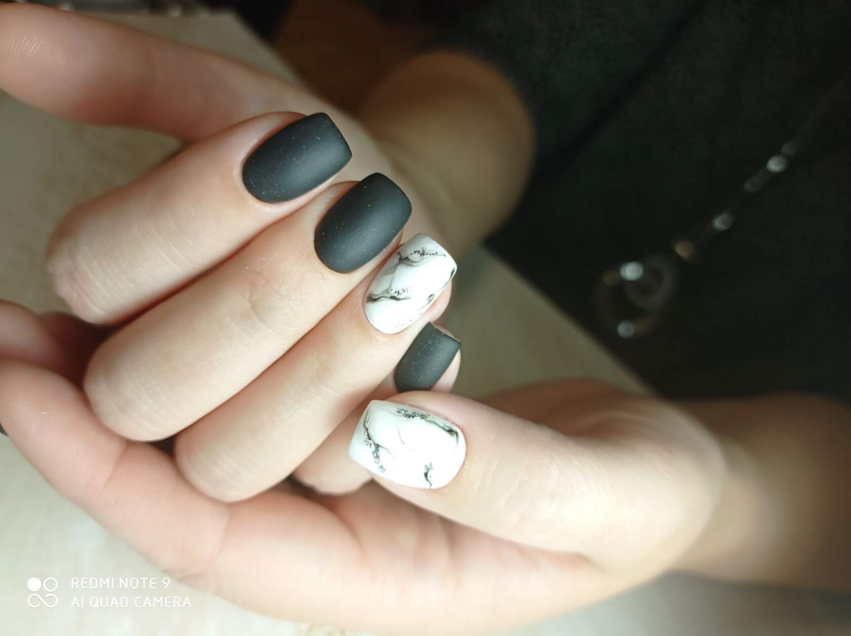 Мраморный маникюр: идеи дизайна ногтей в темных цветах