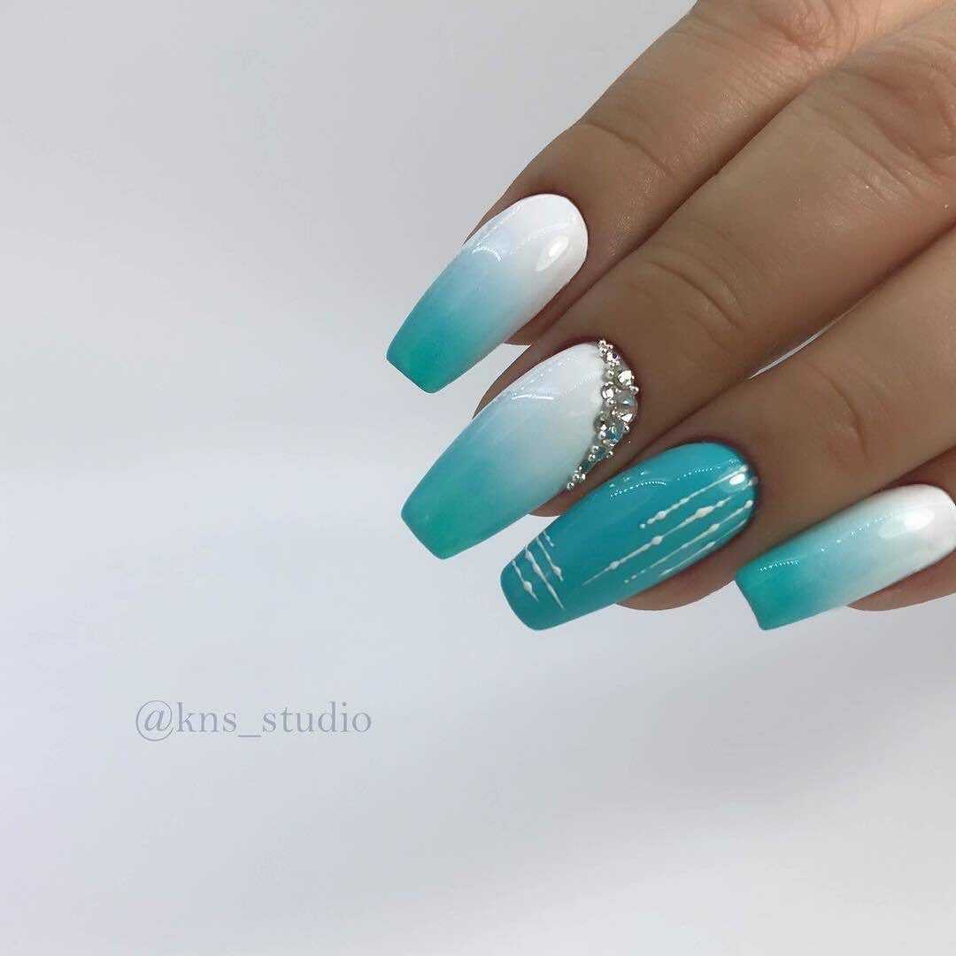 Молочный раскрывает благородство и роскошь изумрудного цвета. Матовая текстура, мрамор, битое стекло, золотистая фольга – эти техники сделают дизайн объемным и дорогим.