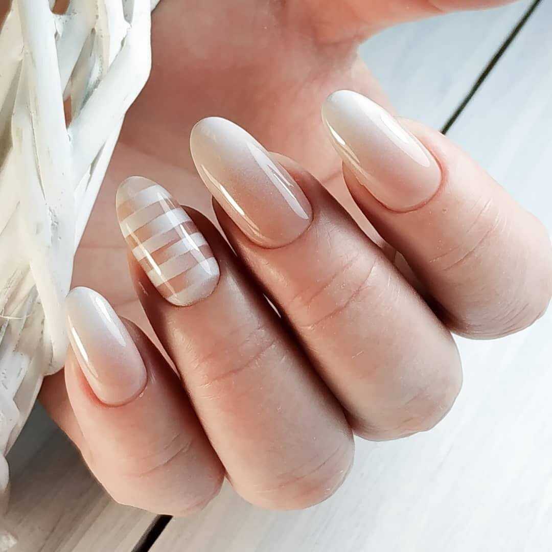 Нюдовый маникюр подходит для любой ситуации. Молочный лучше сочетать в дизайне со светло-кофейными, розоватыми и лиловыми оттенками.