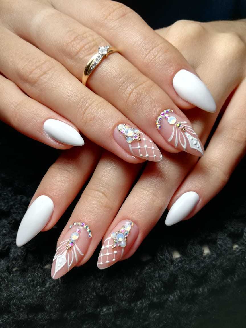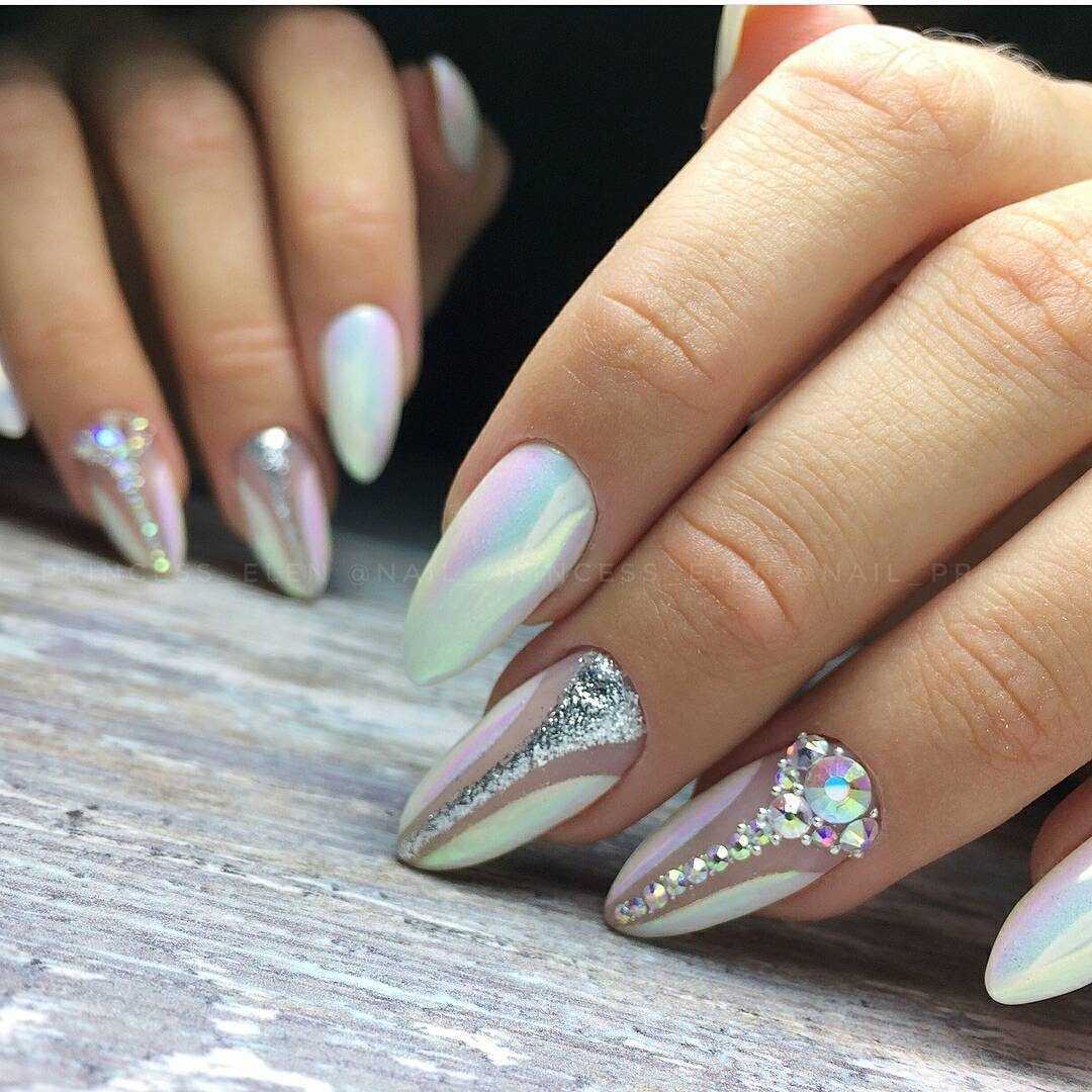 Дополнить дизайн можно стразами, мелкими жемчужными полубусинами или опалами.