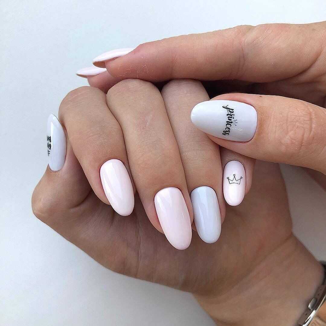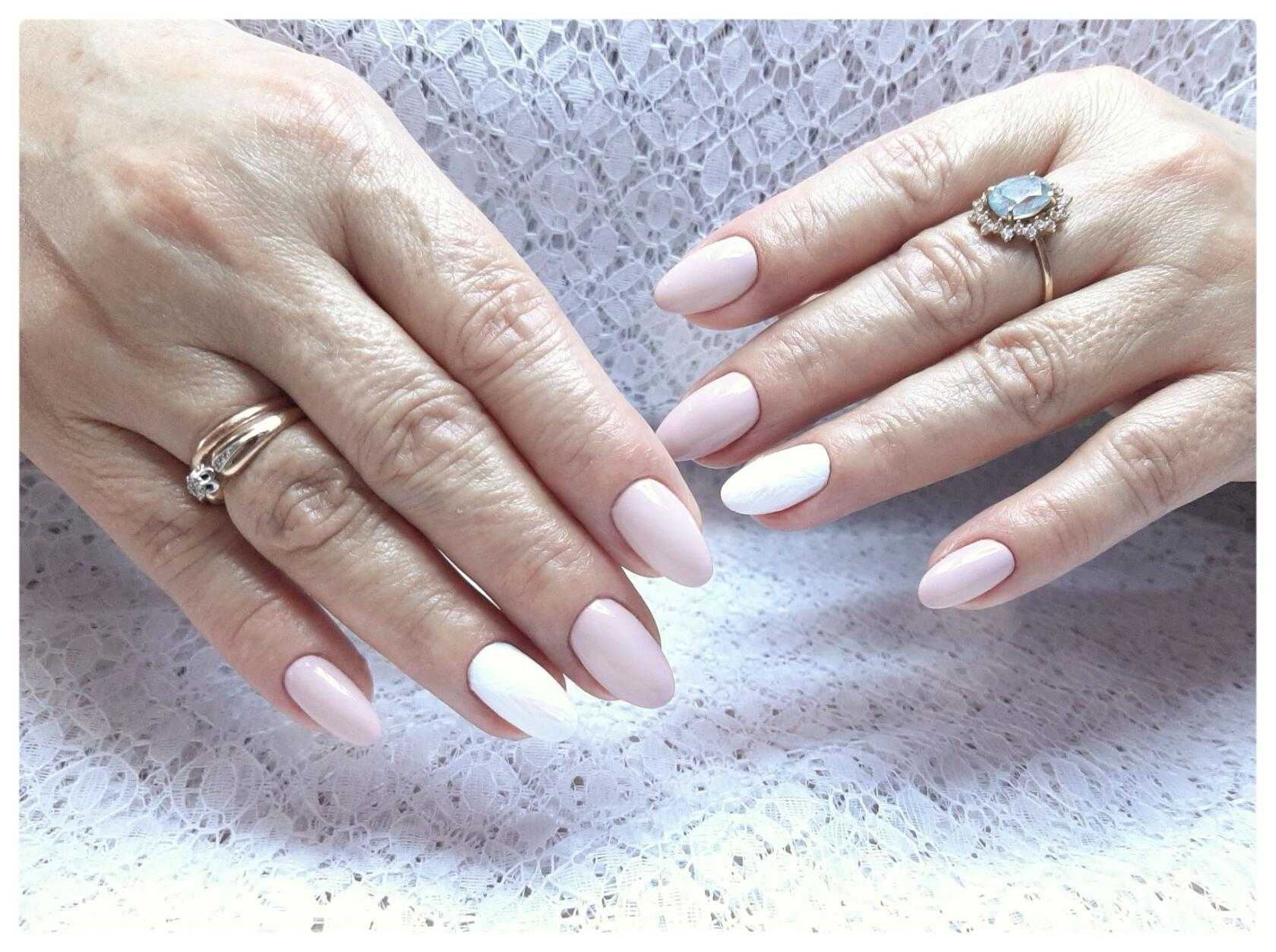 - Белый с любыми пастельными оттенками – хороший вариант для неброского маникюра, особенно долговременного (шеллак), когда вы не хотите подбирать одежду под него.