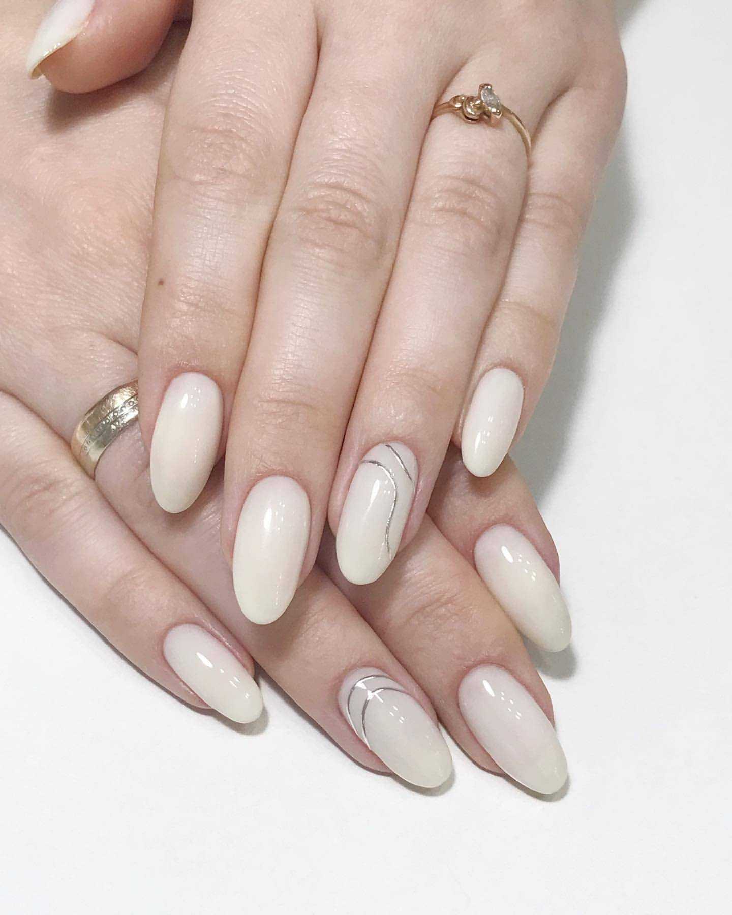 Можете не переживать за перегруженность такого дизайна. За счет нейтральности и спокойствия молочного цвета этот маникюр трудно сделать вычурным.