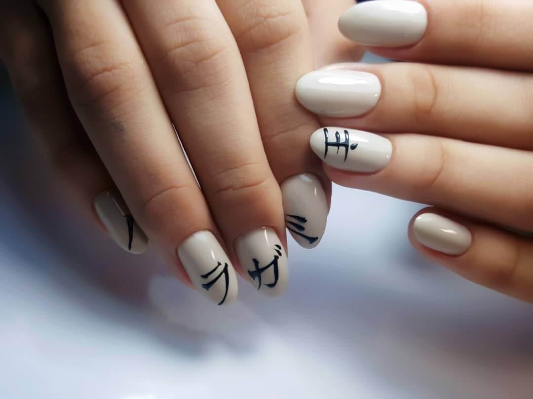 Идеи красивого маникюра с иероглифами