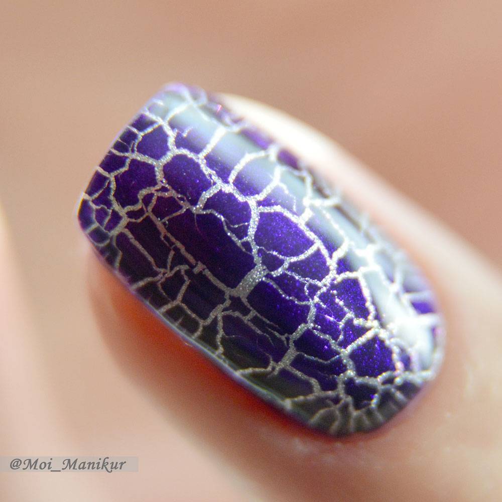 Именно контраст слоев позволяет добиться яркого дизайна на ногтях.Таким образом, верхний слой обнажает нижний, тем самым пуская трещинки.