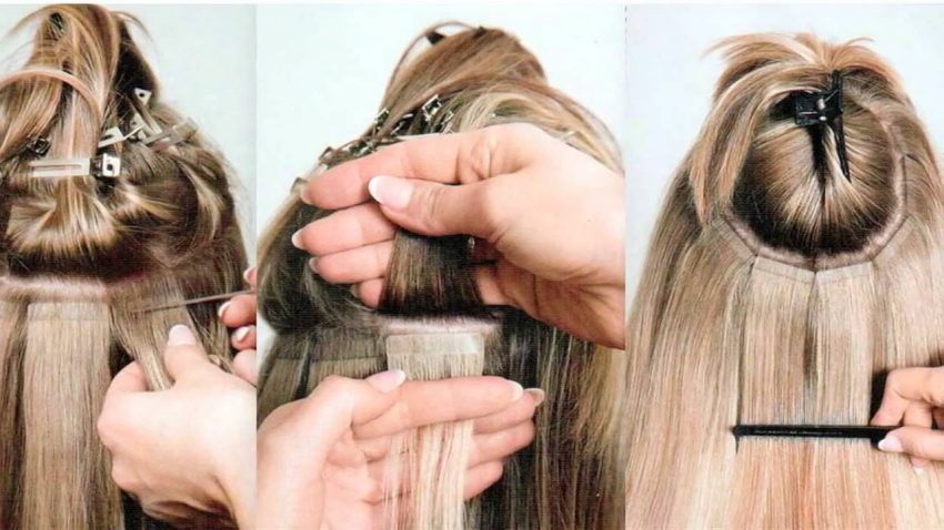 Ленточное наращивание волос относится к холодным способам. Весь процесс заключается в прикреплении искусственных прядей к натуральным с помощью специальных клейких лент/скотча.
