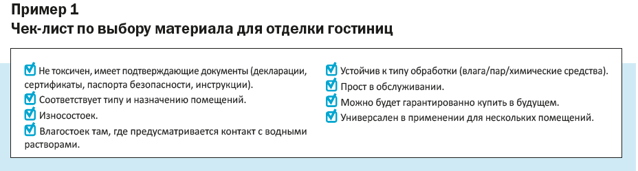 Чтобы помочь выбрать материалы для отделки, мы подготовили для вас чек-лист (пример 1).
