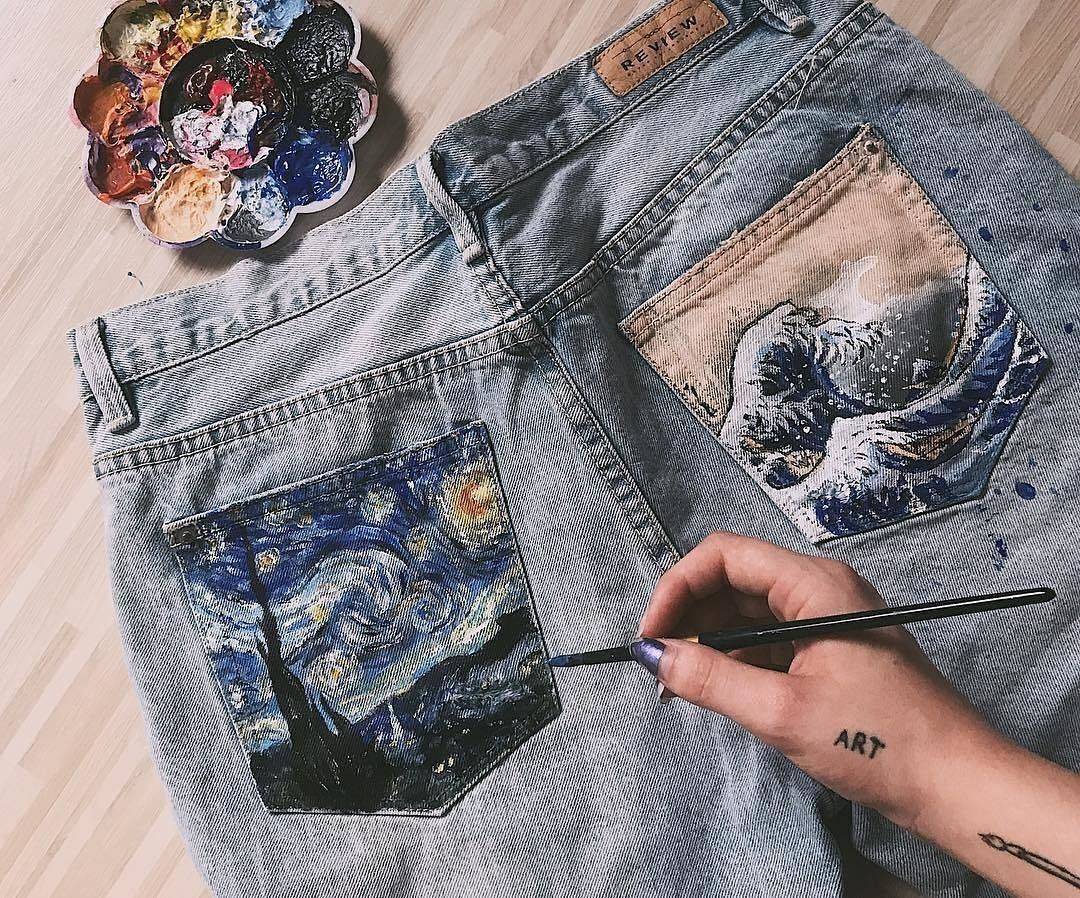 Очень оригинальным решением декоративного дополнения джинсов является роспись.