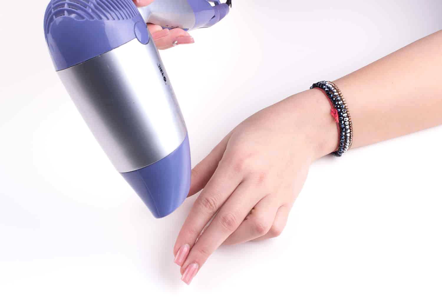 Чтобы быстрее высушить накрашенные ногти, можно воспользоваться феном. Это старый, но достаточно распространенный и проверенный временем метод.