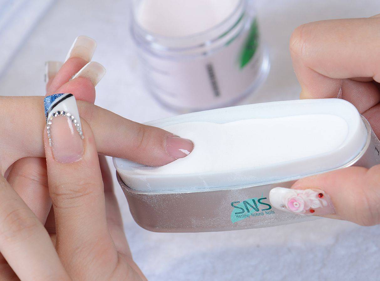 С помощью клея легко починить треснувший или поврежденный ноготь. Для этого необходимо нанести на пластину клей, а затем погрузить его в пудру. Шлифовальным блоком покрытие полируют после высыхания клея. Чтобы обеспечить более прочное сцепление, необходимо нанести второй слой клея и пудры.