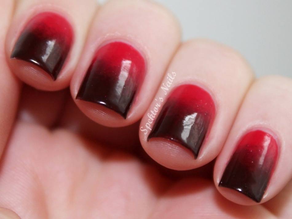 ноготь, накрашенный при помощи губки. Двойной цвет