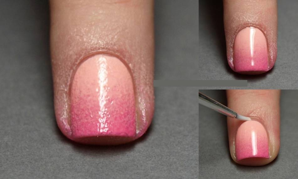 Как же сделать маникюр с переходящими цветами при помощи обычной губки: