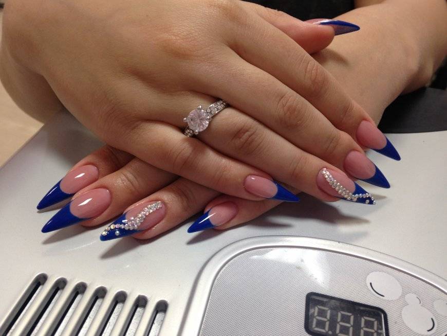 Выбирая дизайн острых нарощенных ногтей, помните, что от правильного стиля зависит ваш образ в целом. Слишком яркие тона лака и большое количество украшений не подойдут под спортивный стиль. Тогда как к вечернему они будут в самый раз.