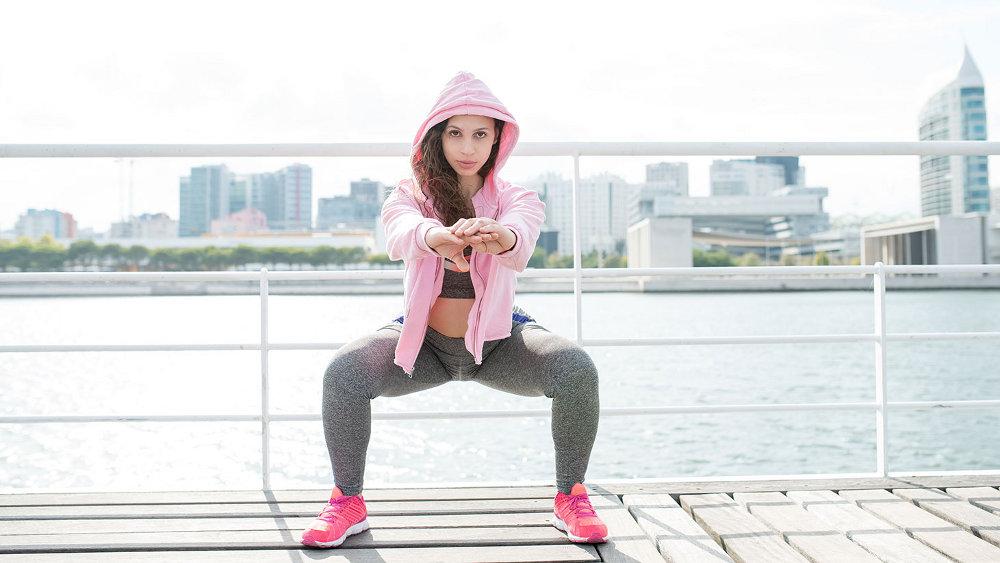 Выполнение упражнения не отличается от классического варианта. Ноги ставятся не на ширине плеч, а намного уже. Присед делается на вдохе, в результате бедро и голень должны образовать угол, не доходя до 90 градусов. Если девушка качает попу правильно, колени не выходят за носки