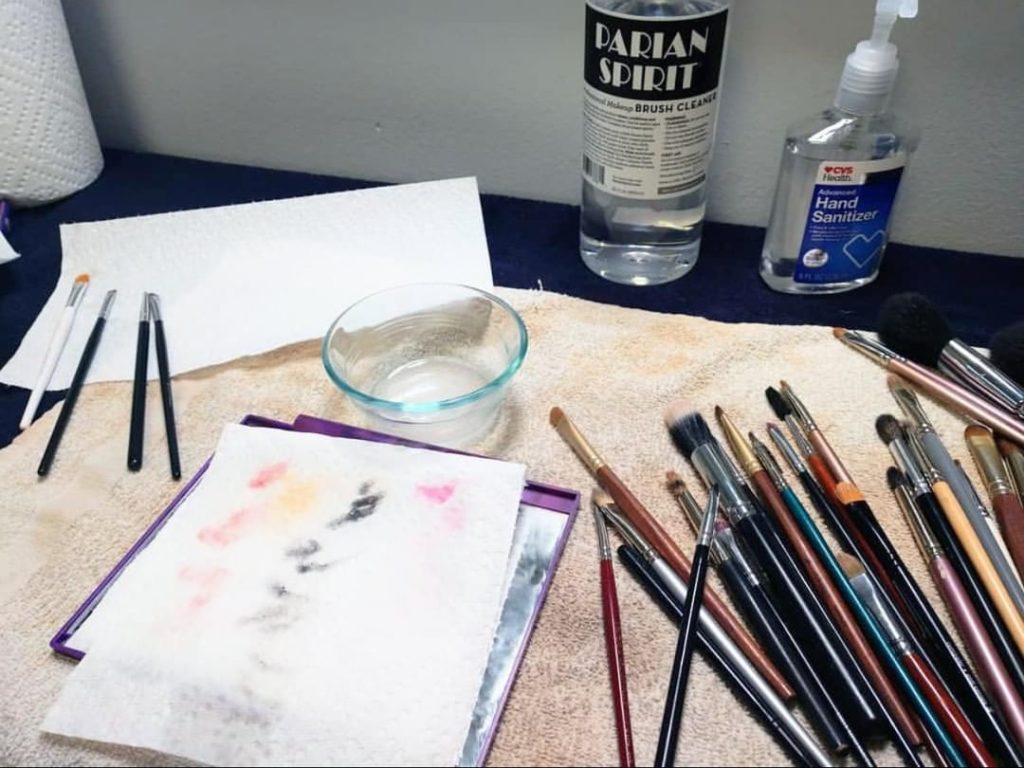 Этот метод очистки щеток заключается в распылении спиртового раствора на инструмент из распылительной бутылки. Добавьте немного спирта в оду. Залейте эту смесь в бутылку с распылителем. Слегка обрызгайте смесью щетину, а затем протрите щетки чистым бумажным полотенцем. Очищенные кисти нужно сушить на полотенце.