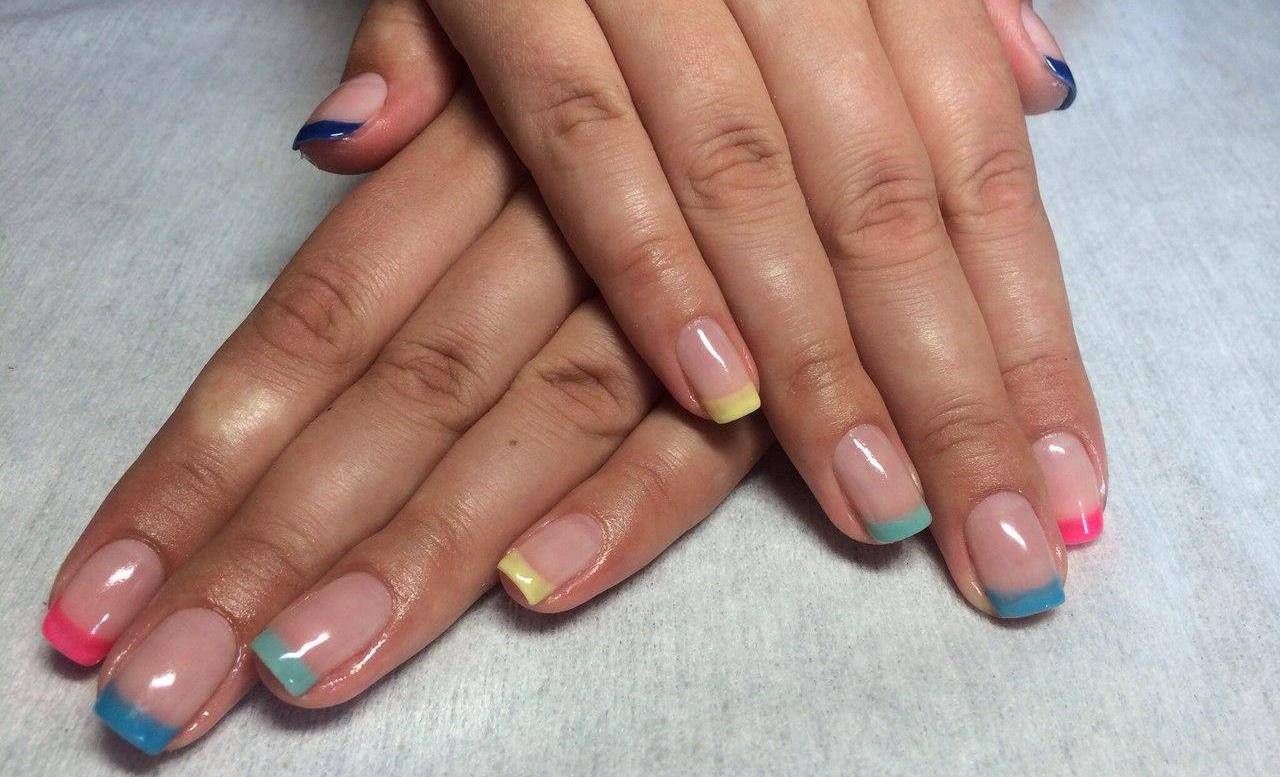 Может быть не только классическим, но и цветным. Разноцветной может быть как линия улыбки, ногтевая пластина и так и оба одновременно.