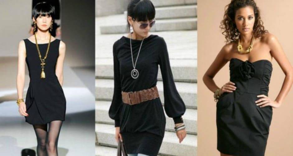 Создавая модный наряд, нельзя забывать об аксессуарах — к черному платью следует подобрать их контрастных цветов: красный пояс, бусы, браслет, кожаный или металлический.