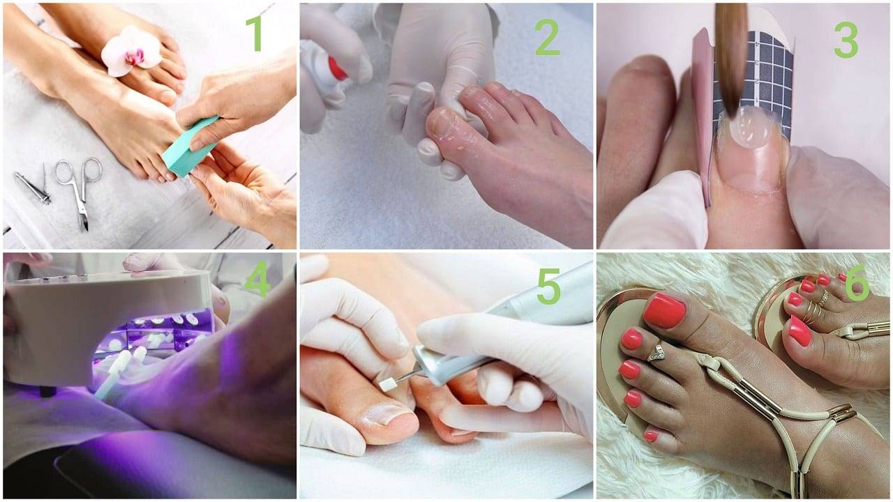 Обработайте стопу и ногти. Произведите снятие старого покрытия. При необходимости сделайте педикюр с удалением кутикулы, а также шлифовку, подпиливание и полировку пластин.