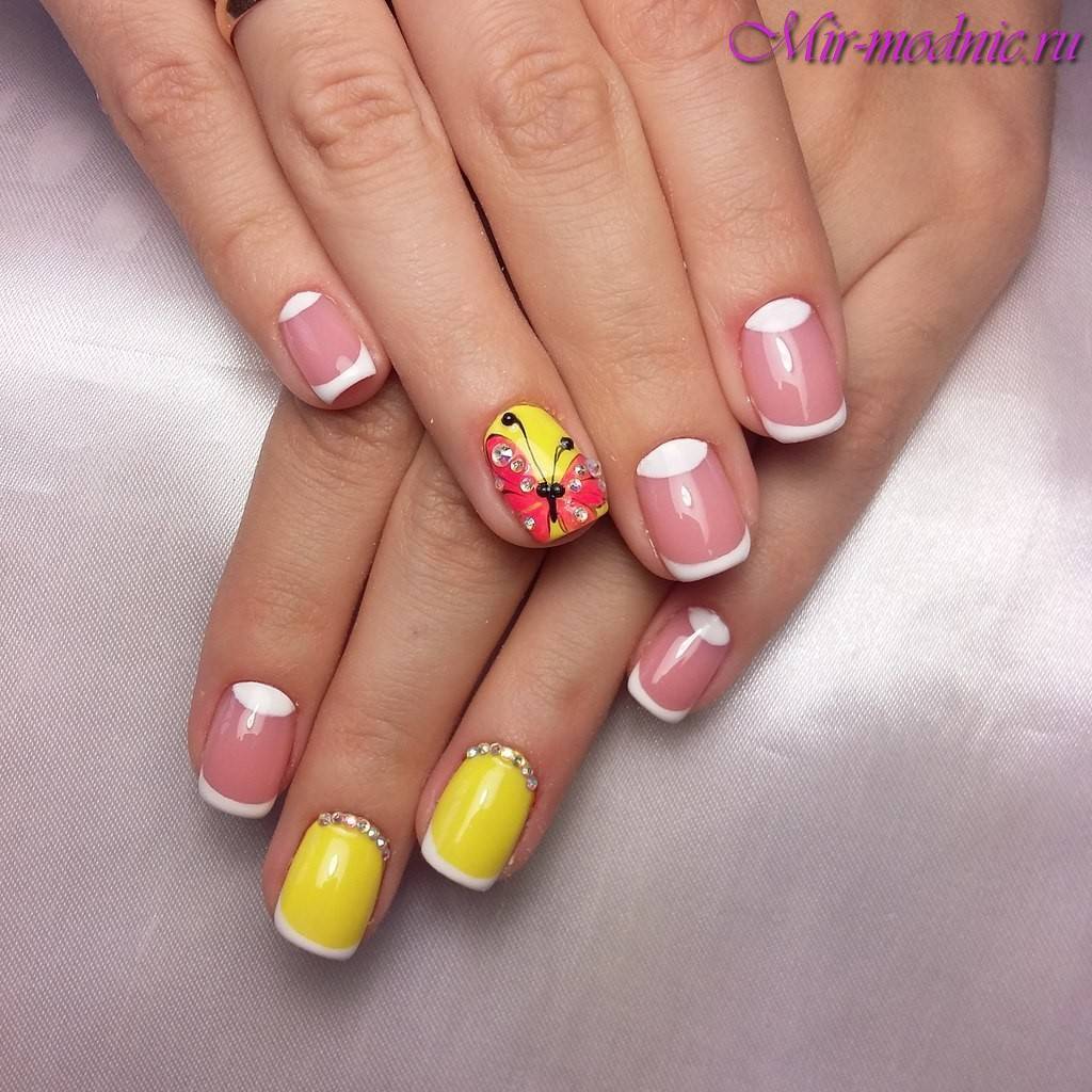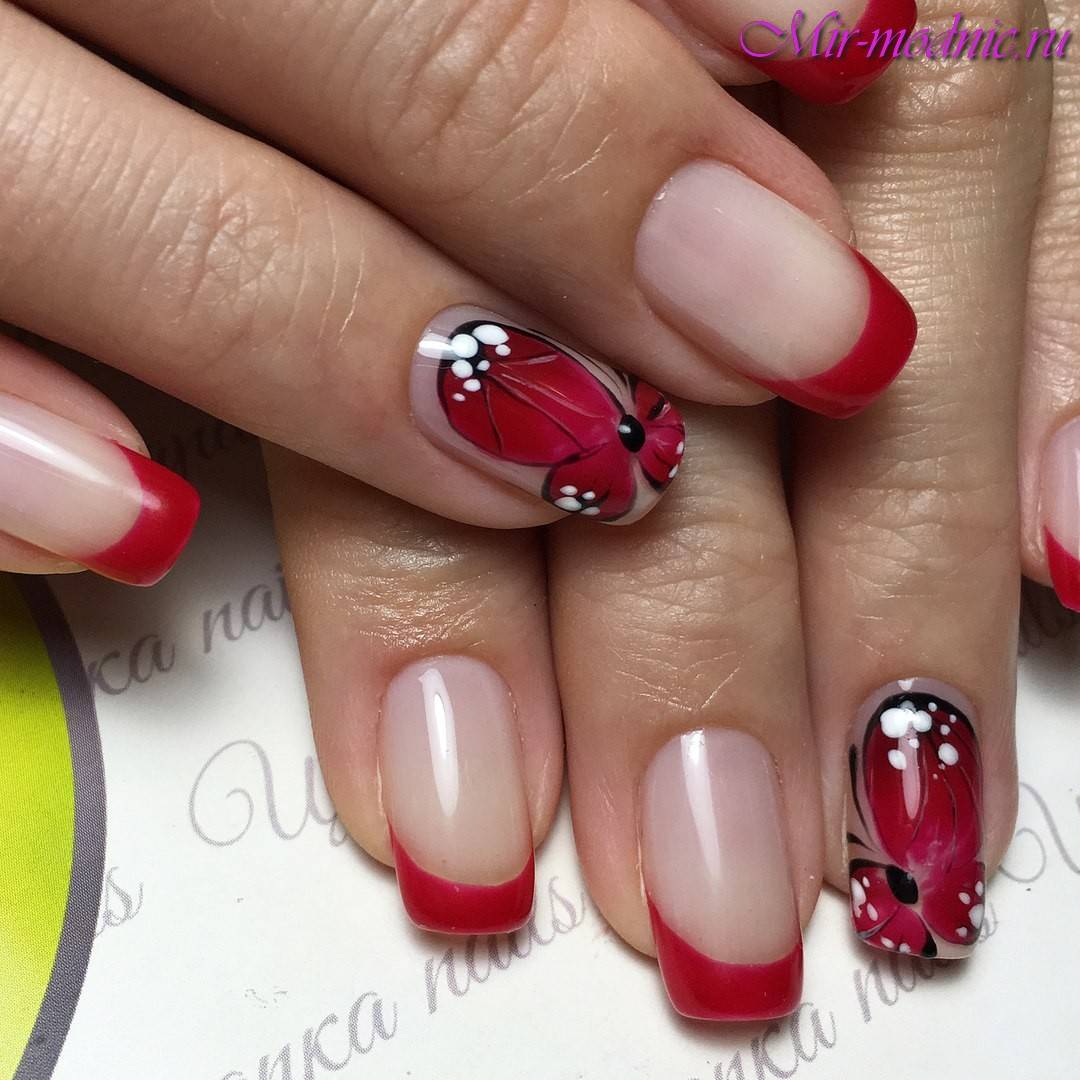 Френч в сочетании с бабочками — очень утонченный маникюр