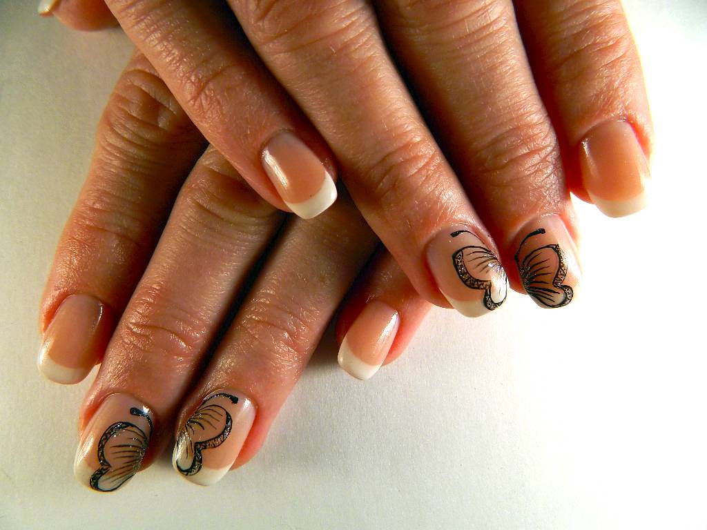 Как видите, ничего сложного в этой технике нет. С этим может справиться даже новичок. А оригинальный французский маникюр с великолепными бабочками украсит Ваши ноготки.