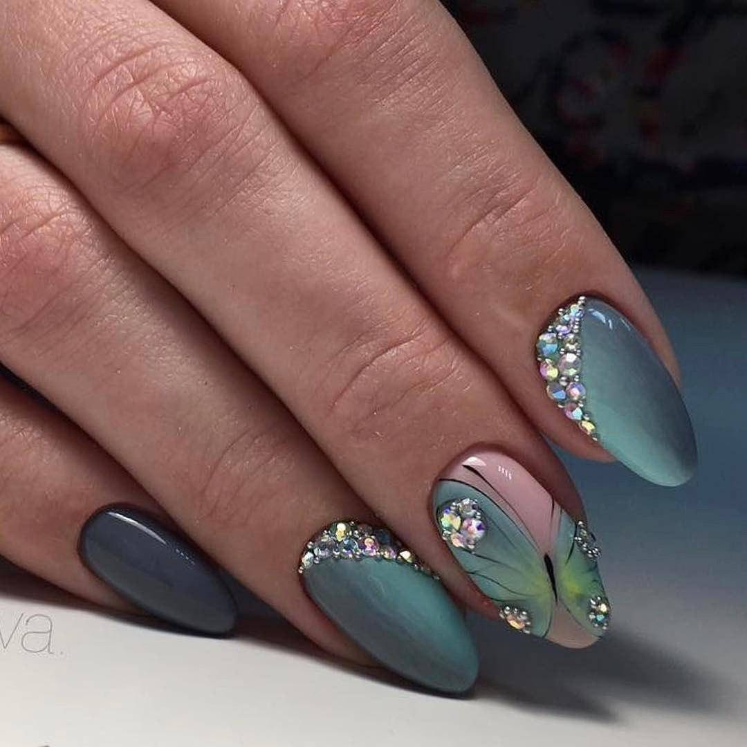 Блестки и стразы очень украсят Ваш нейл-арт в стиле «Бабочки»