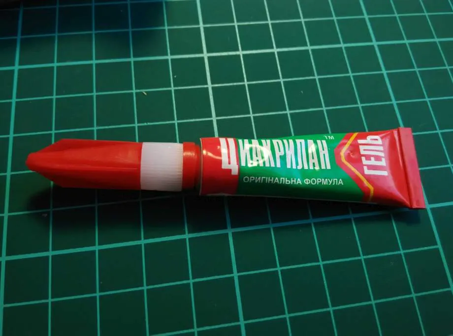 С суперклеем работают аккуратно. Липкий гель выдавливают из тюбика по каплям: одной небольшой капли достаточно, чтобы заполнить окружность диаметром 25 мм. Толстый слой замедляет отверждение, вызывает появление труднорастворимых потеков на руках и склеиваемых деталях.