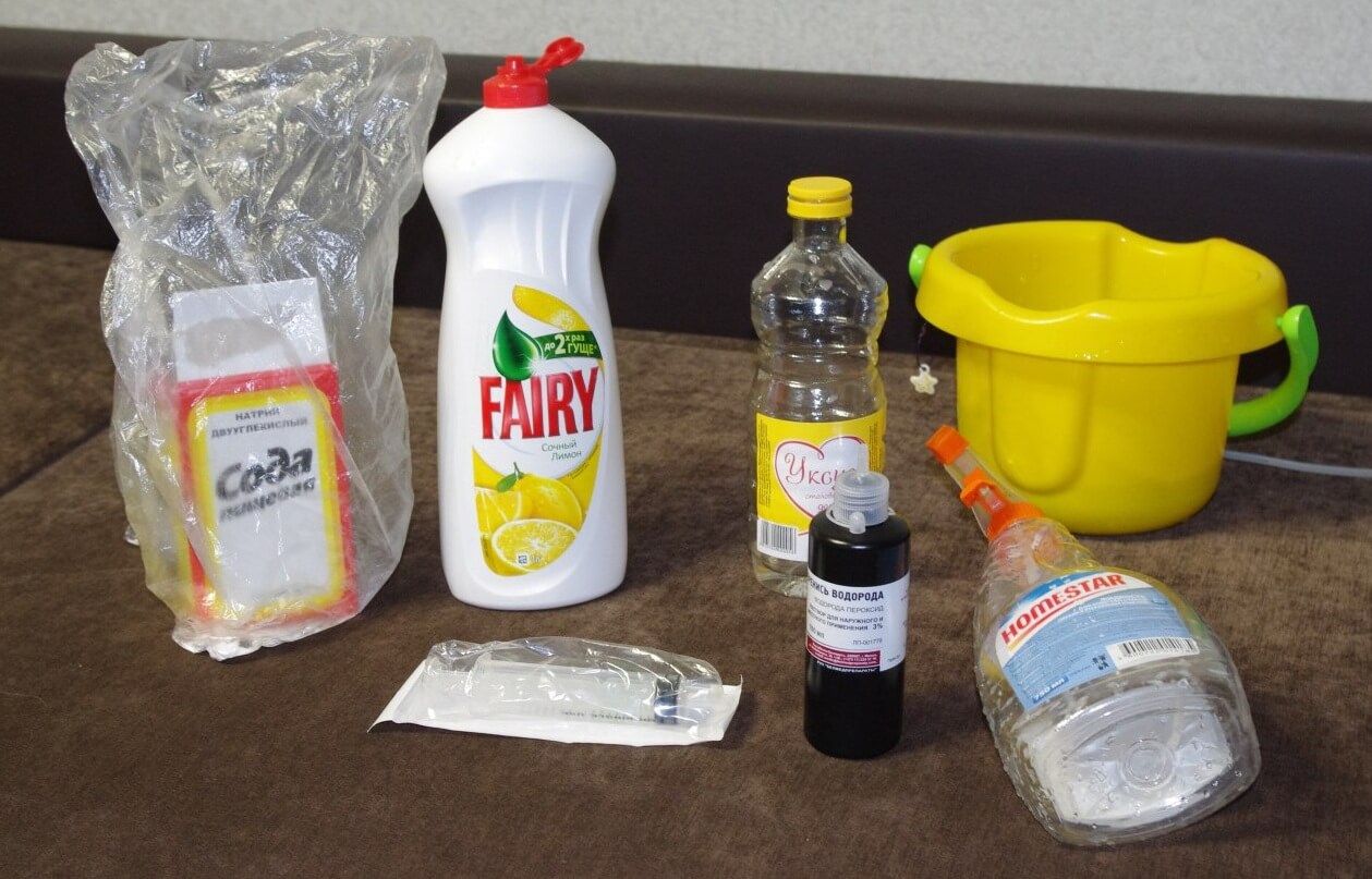 - Остатки загрязнений можно отмыть теплой водой, желательно нейтрализовать кислоту небольшим количеством щелочи, например, раствором пищевой соды.