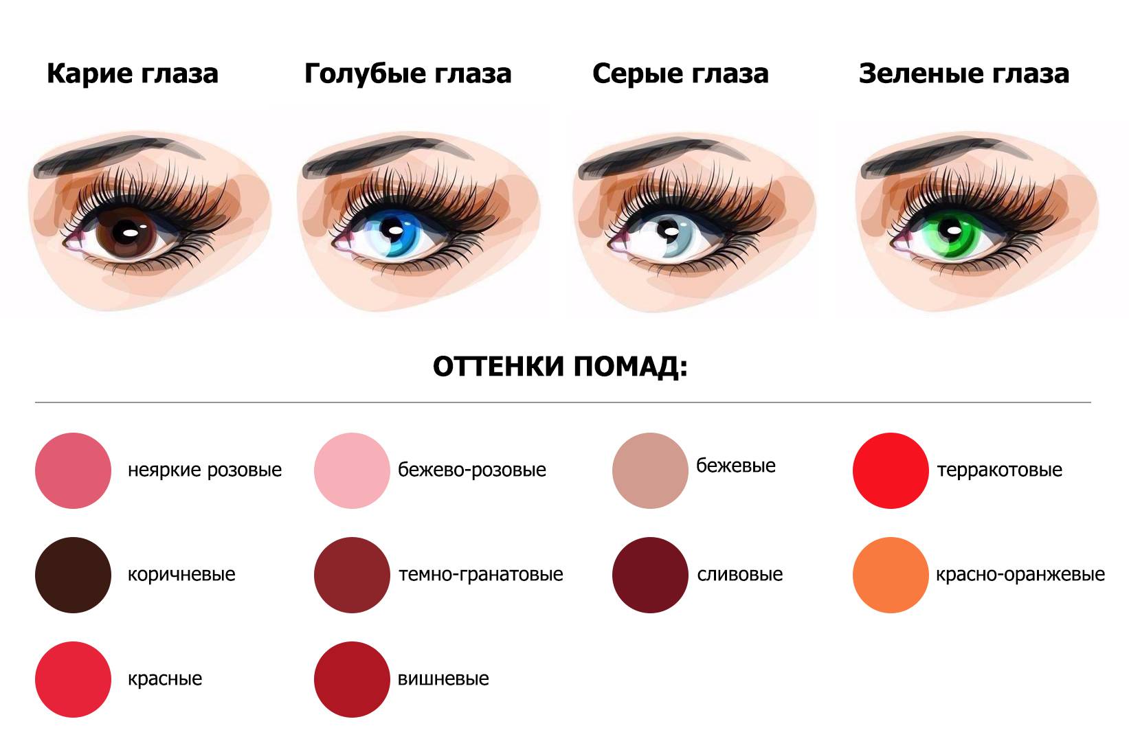 В советах, как правильно подобрать цвет помады для губ, внимание уделяется и глазам. Чем светлее радужка, тем ярче и насыщеннее должно быть покрытие. Например, кареглазым женщинам лучше подойдет глубокий благородный тон средства, а дамам с голубыми глазами – помада самого чистого красного тона