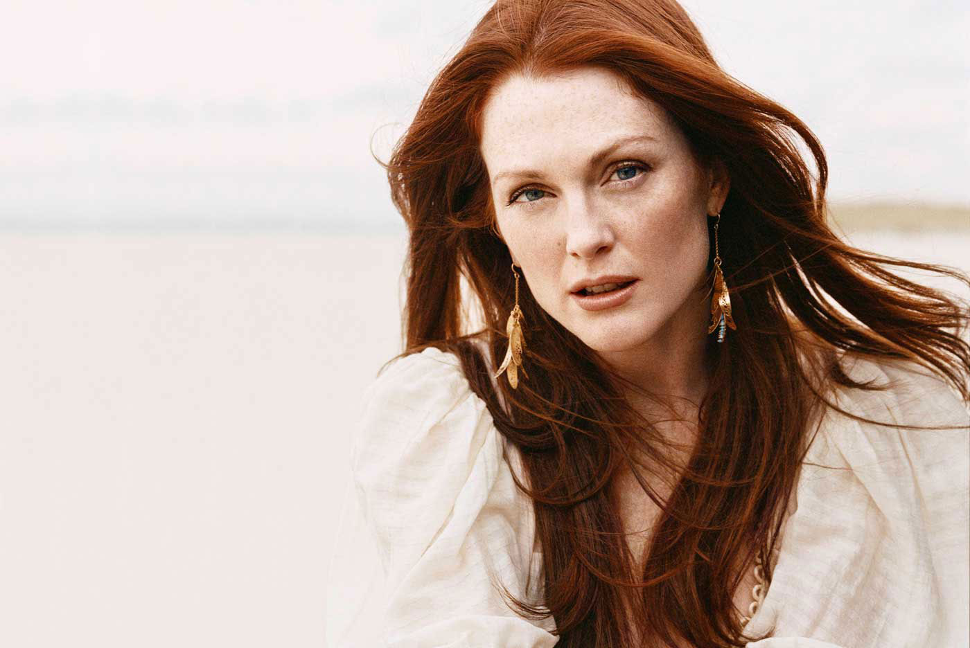 Поблекшие рыжие волосы помогут оживить неяркие благородные оттенки: от золотистого до светло-каштанового с чуть заметной рыжинкой. Например, актриса Джулиана Мур выбрала тепло-каштановый цвет. Он прекрасно смотрится со светлой, как матовый фарфор, кожей.