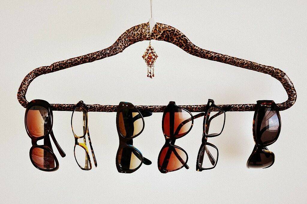 Держать очки на вешалках можно в шкафу (меньше будут пылиться) или в качестве детали интерьера — прямо на стене.