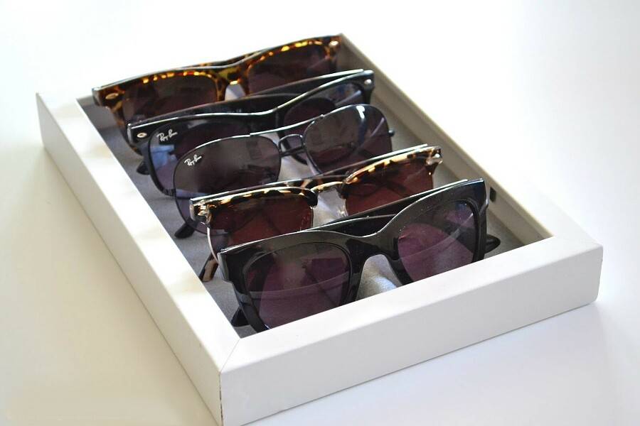 Очки от солнца — не только функциональная вещь, но и часть образа. Если собралась довольно большая их коллекция, следует найти место хранения очков, а еще приобрести для них специальный органайзер или сделать его самостоятельно.