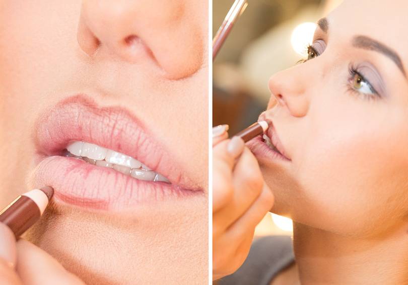 На данном этапе вам нужно очертить контур карандашом, который должен совпадать по цвету с помадой. Если же вы купите карандаш темнее, макияж получится грубым, светлее — размазанным. Дамам с тонкими губами рекомендовано использовать красный карандаш, при этом очерчивать контур выше естественного, чтобы визуально увеличить губы. Вы также можете изменить форму, придавая пухлость. Девушкам, у которых контур не вызывает нареканий, стоит отдавать предпочтение карандашам под цвет губ.