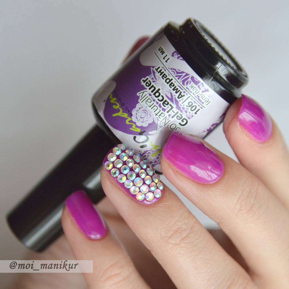 - Гель-лак наносится на все ногти, которые будут украшаться стразами.