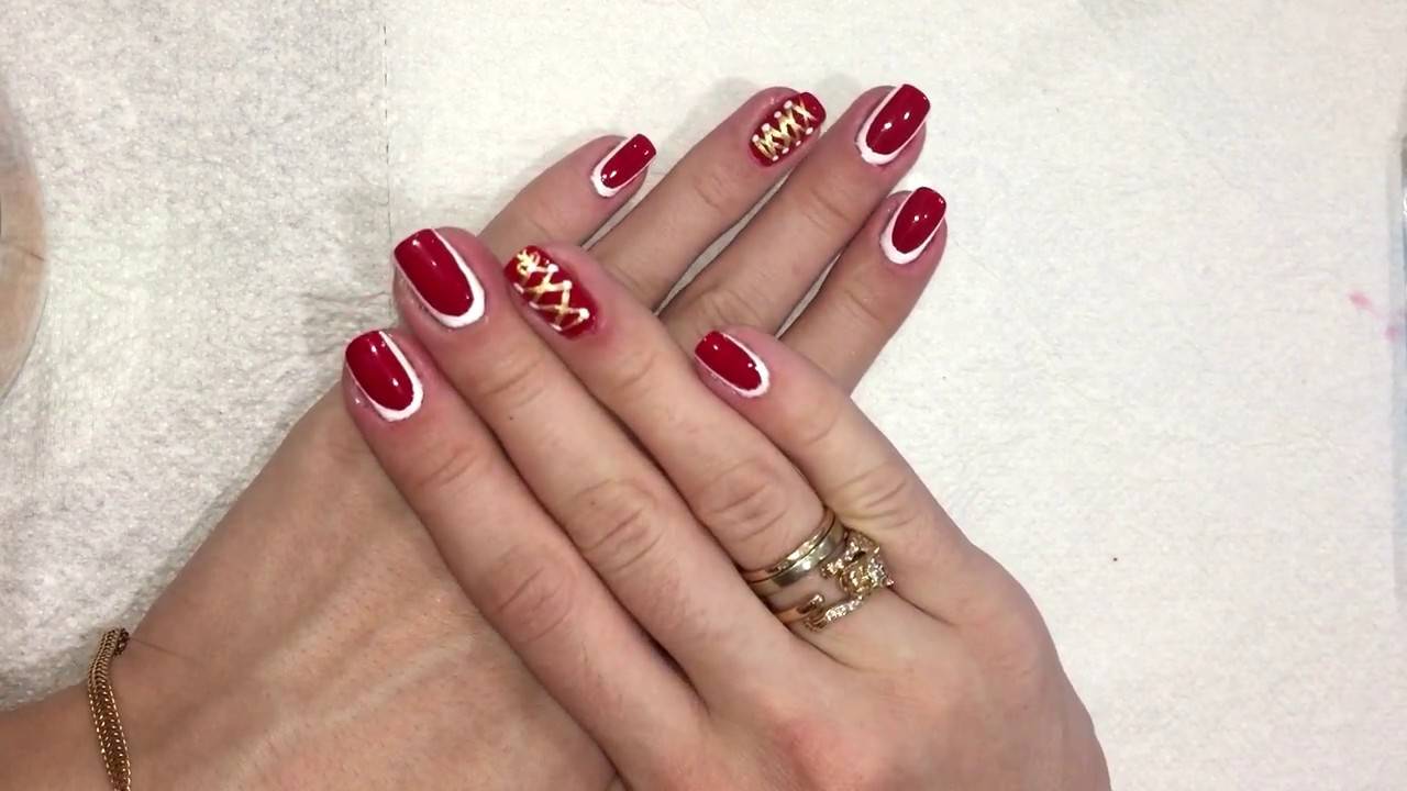 - Проведите букву «V» из тонких контрастных линий к основанию ногтя.